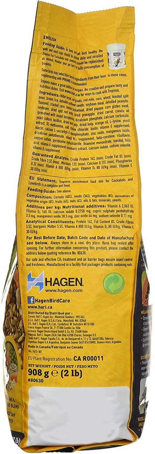 Hari Hagen Tropimix Enrichment Food for Cockatiels & Lovebirds, 2 lb. – HARI Parrot Food with Seeds, Fruit, Nuts, Vegetables, Grains, and Legumes