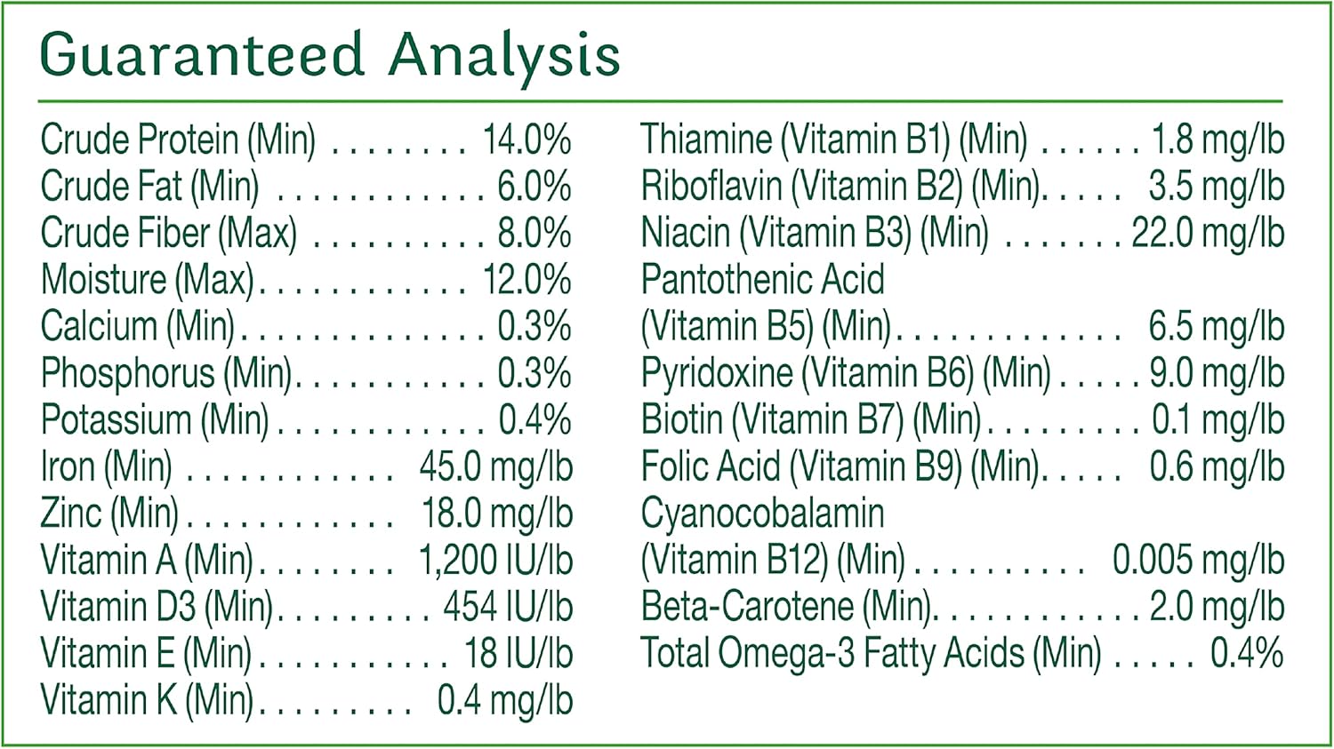 ADVANCED NUTRITION: Contains vitamins, minerals and Omega-3 fatty acids to support healthy skin and shiny feathers.