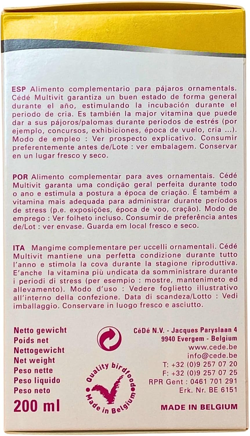 CéDé Multivit 200ml – Vitamin Supplement for Ornamental Birds, Singing and Moulting, Healthy and Shiny Plumage, Ideal for Canaries, Finches, Parrots, Essential Vitamins & Nutrients for Optimal Health