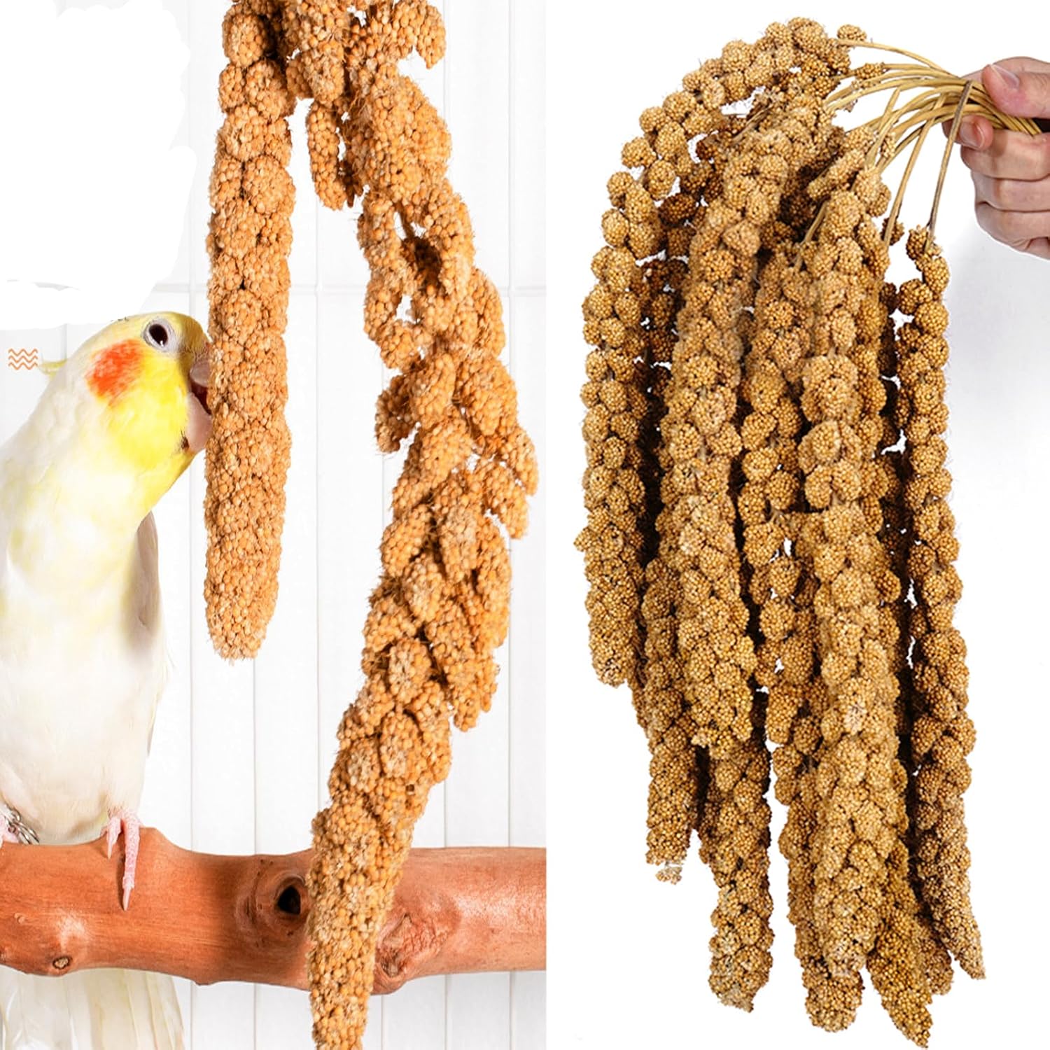 Tailored to Individual Size: As a natural product, the length of each spray millet stalk may vary. Rest assured, we ensure that the stalks are of suitable sizes for your pets to enjoy