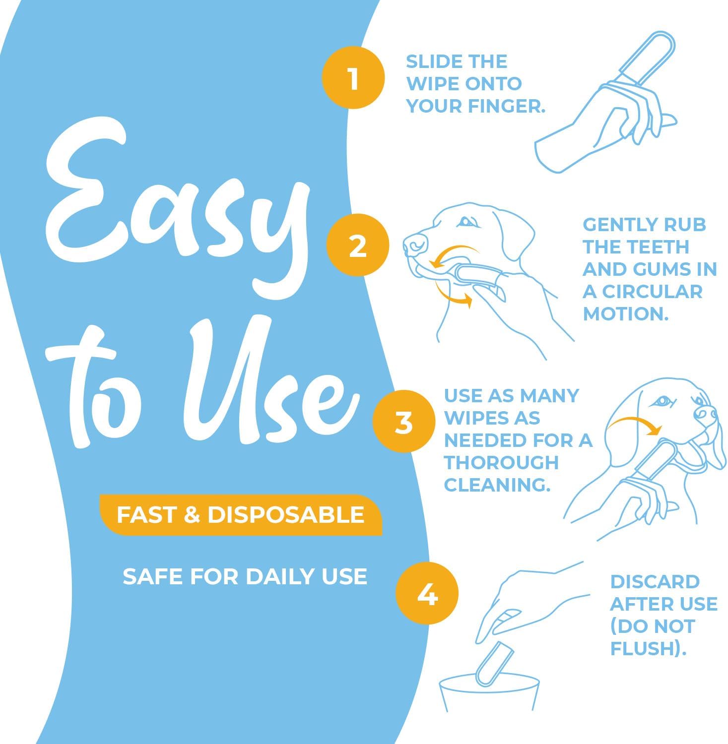 Convenient Finger Wipes: The finger wipe design allows for better control and ease of use, ensuring a thorough cleaning experience. Perfect for puppy and small breeds. Breath Freshener, Bright Teeth Cleaner.