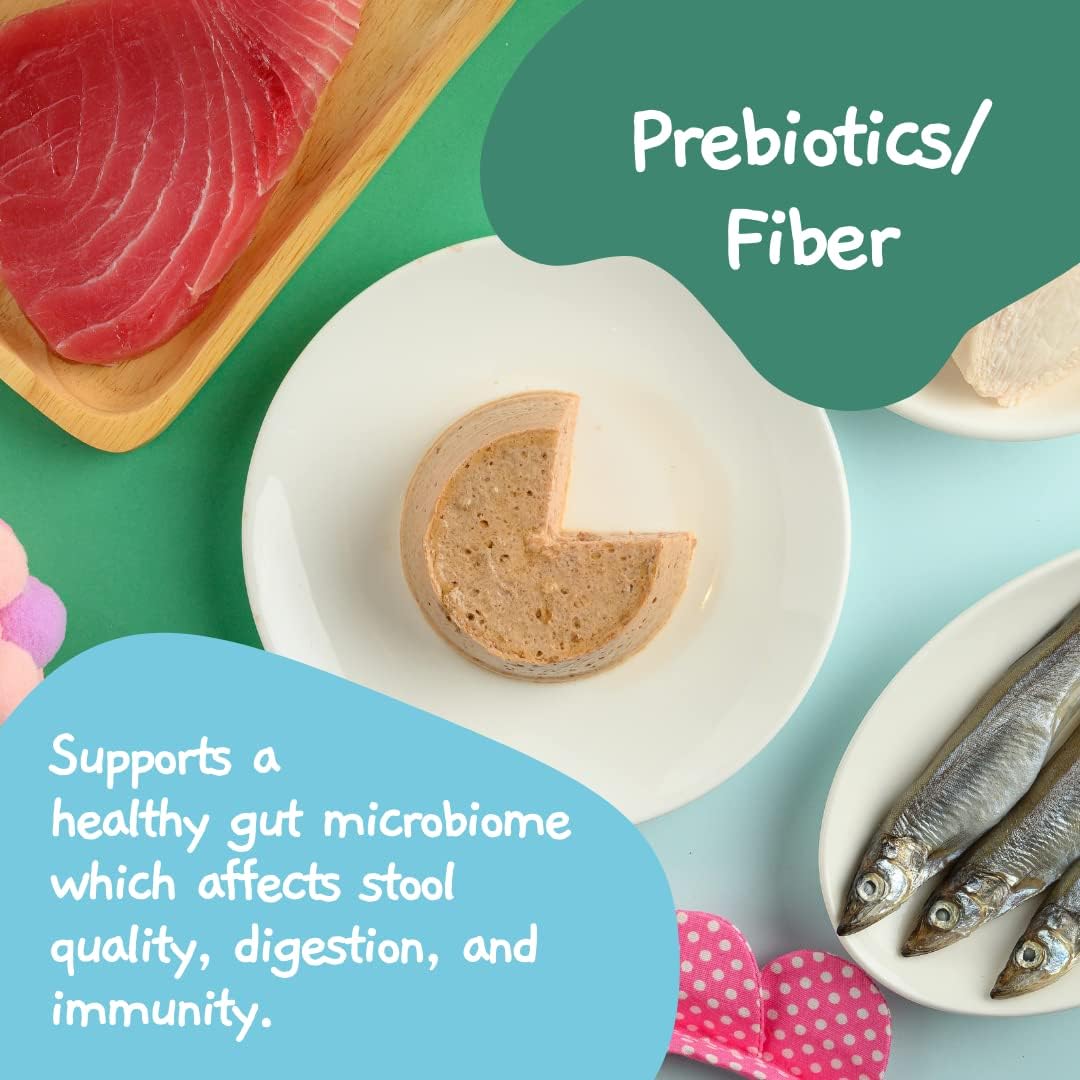 Prebiotics/Fiber: We include prebiotics in our sensitive stomach wet cat food to support a healthy gut microbiome which affects stool quality, digestion, and immunity.