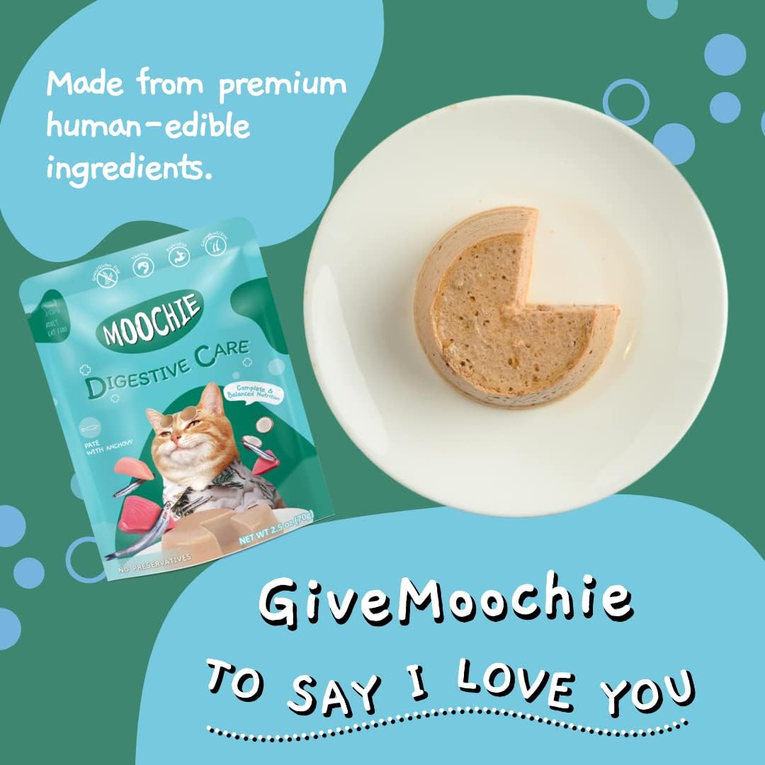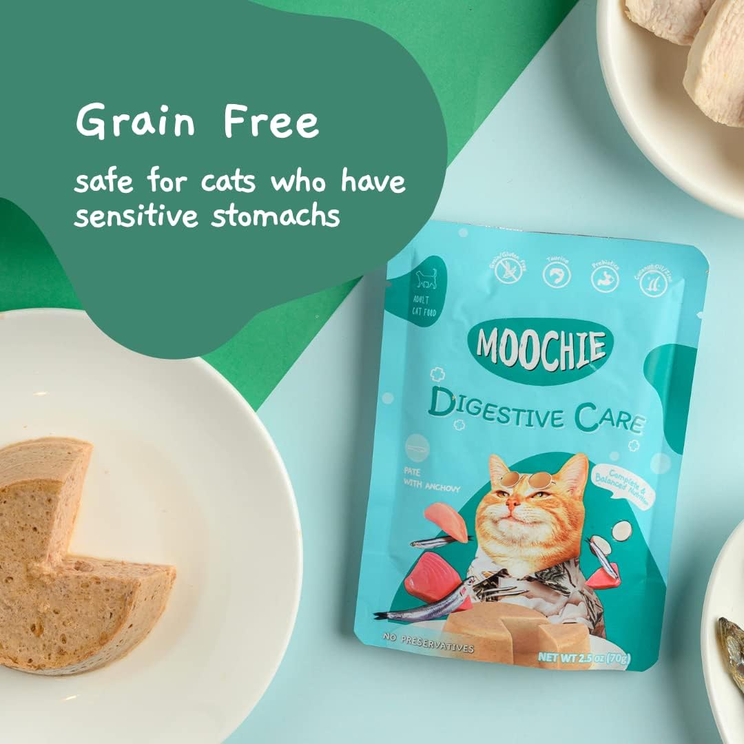 MOOCHIE Grain Free Adult Wet Cat Food – Digestive Care – Anchovy, Chicken, Tuna, Beef Pâté – No Artificial Flavors or Preservative – 12 x 2.5 oz Pouch