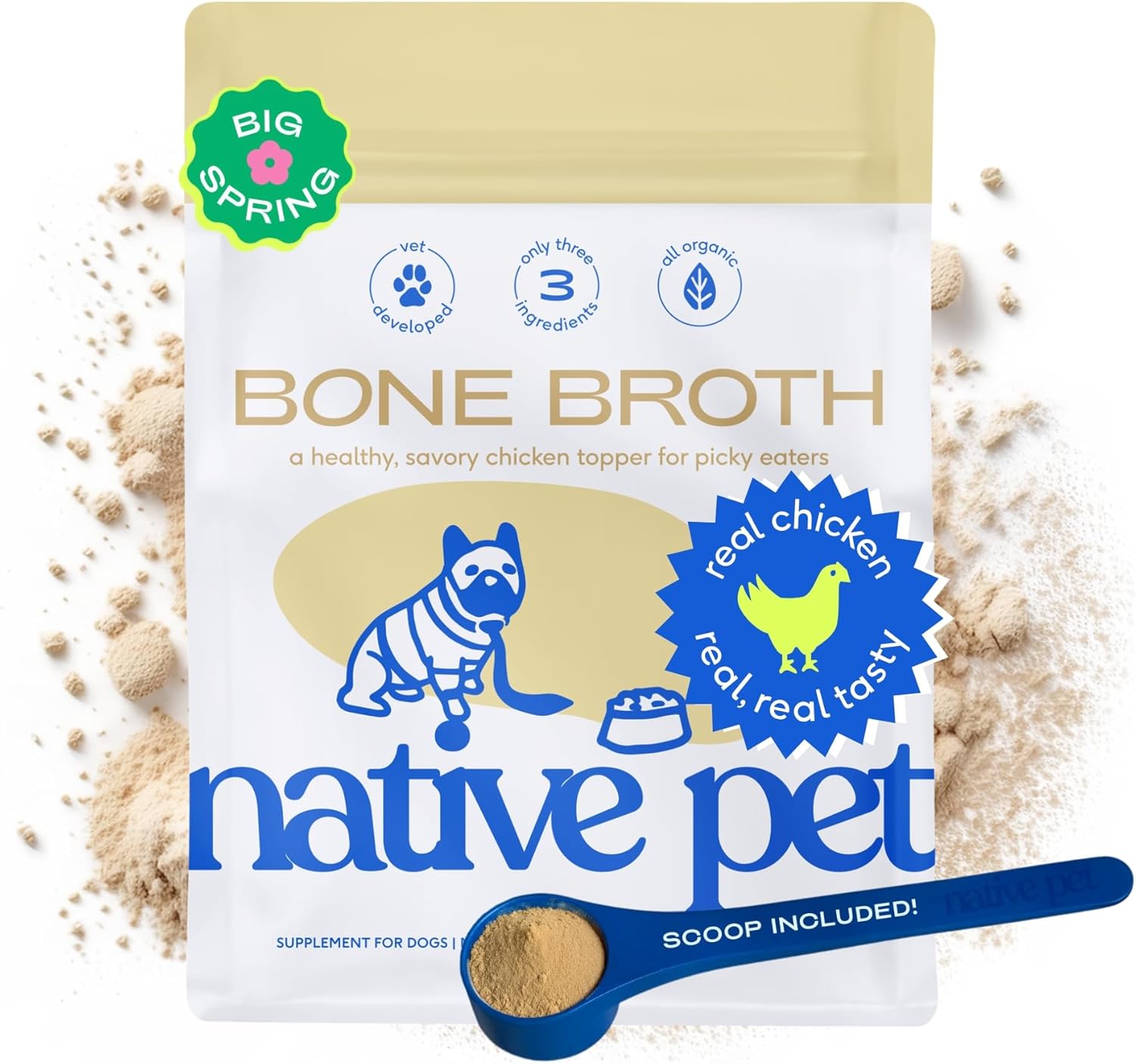 Native Pet Bone Broth for Dogs and Cats – Chicken Bone Broth Powder Dog Food Toppers for Picky Eaters – Provides Extra Nutrition for Joint Strength, Immune Support & Heart Health – 192 Scoops