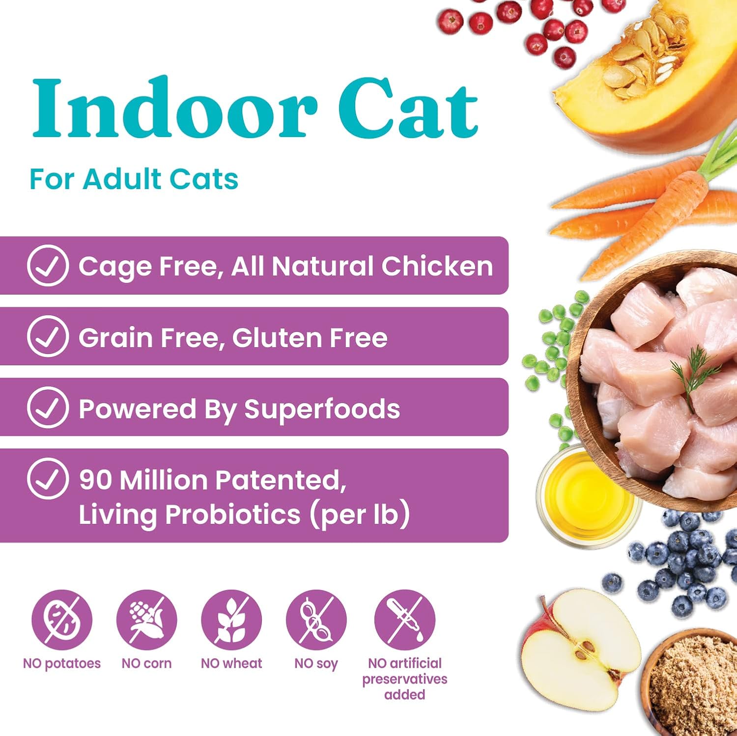 Ingredients That Indoor Cats Love – Packed with vitamins, superfood, antioxidants, and omega 3 & 6 fatty acids (DHA) that can support coat health, sensitive stomachs, and immunity for feline pets.