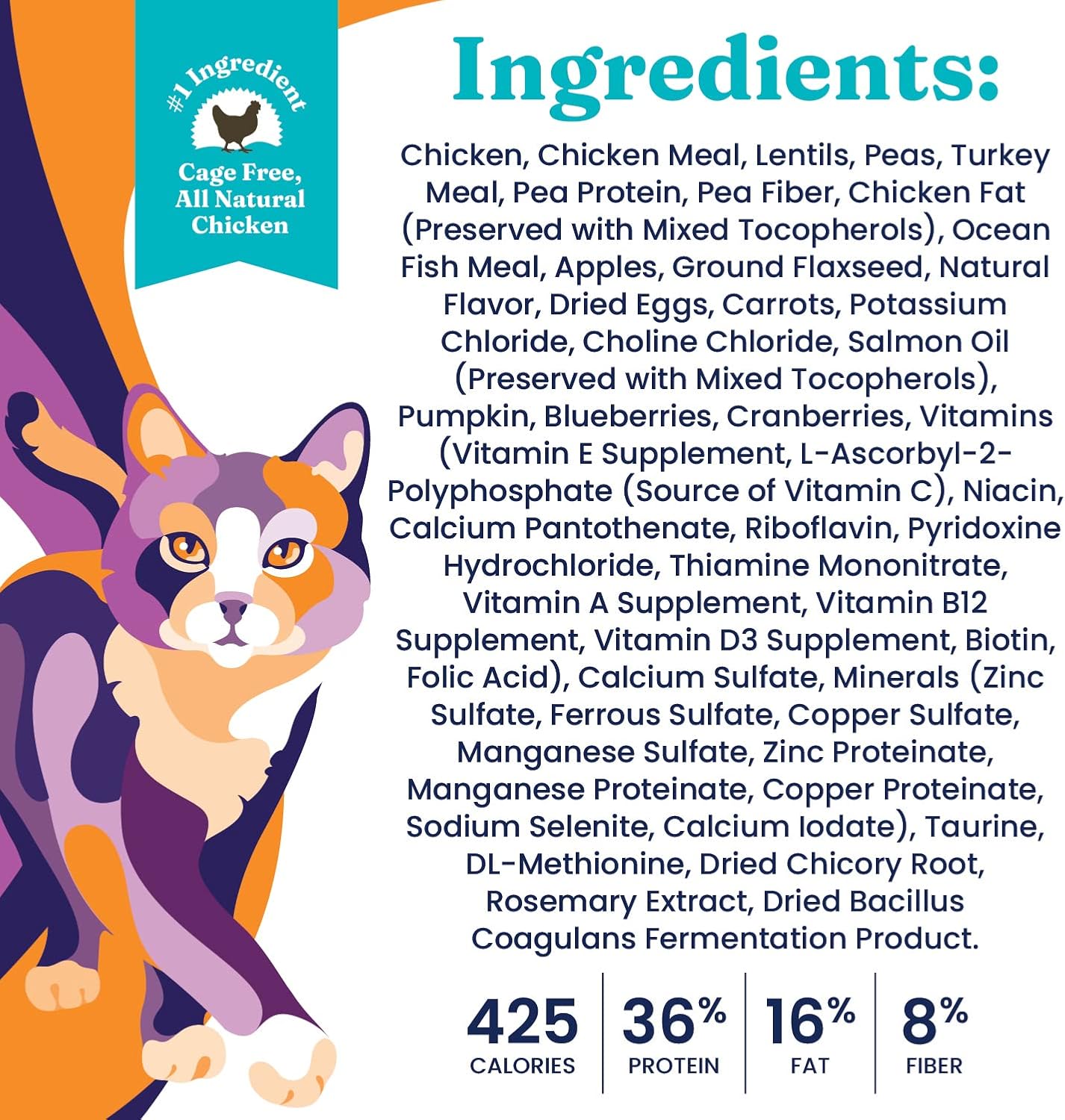 Real Meat in Every Bite – This kibble formula is made with cage free, all natural chicken for a flavor your cat will crave, along with a source of protein is coming from the highest quality sources.