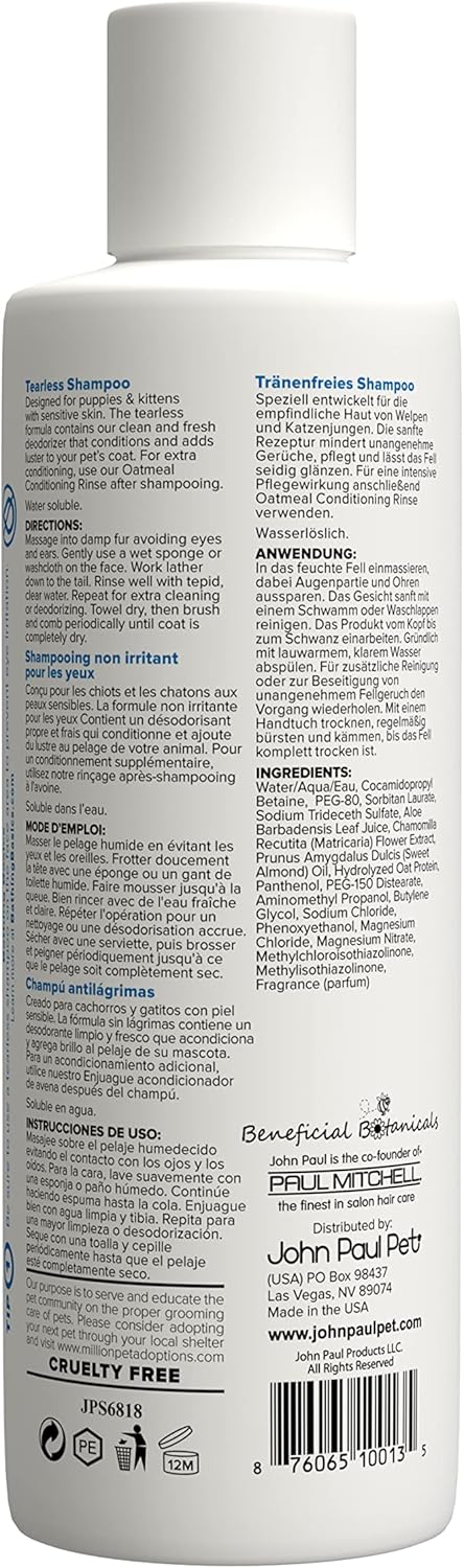 John Paul Pet Tearless Odor Absorbing Shampoo, Clean Face and Fresh Deodorizer for Puppies and Kittens, 16 fl. oz.
