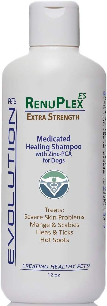 BEST DOG MANGE SHAMPOO. The top rated NATURAL remedy. RenuPlex Extra Strength works to help damaged skin caused by dog mange. Natural Essential Oils and a host of other proven safe ingredients make this a TOP pick shampoo for dog mange problems.