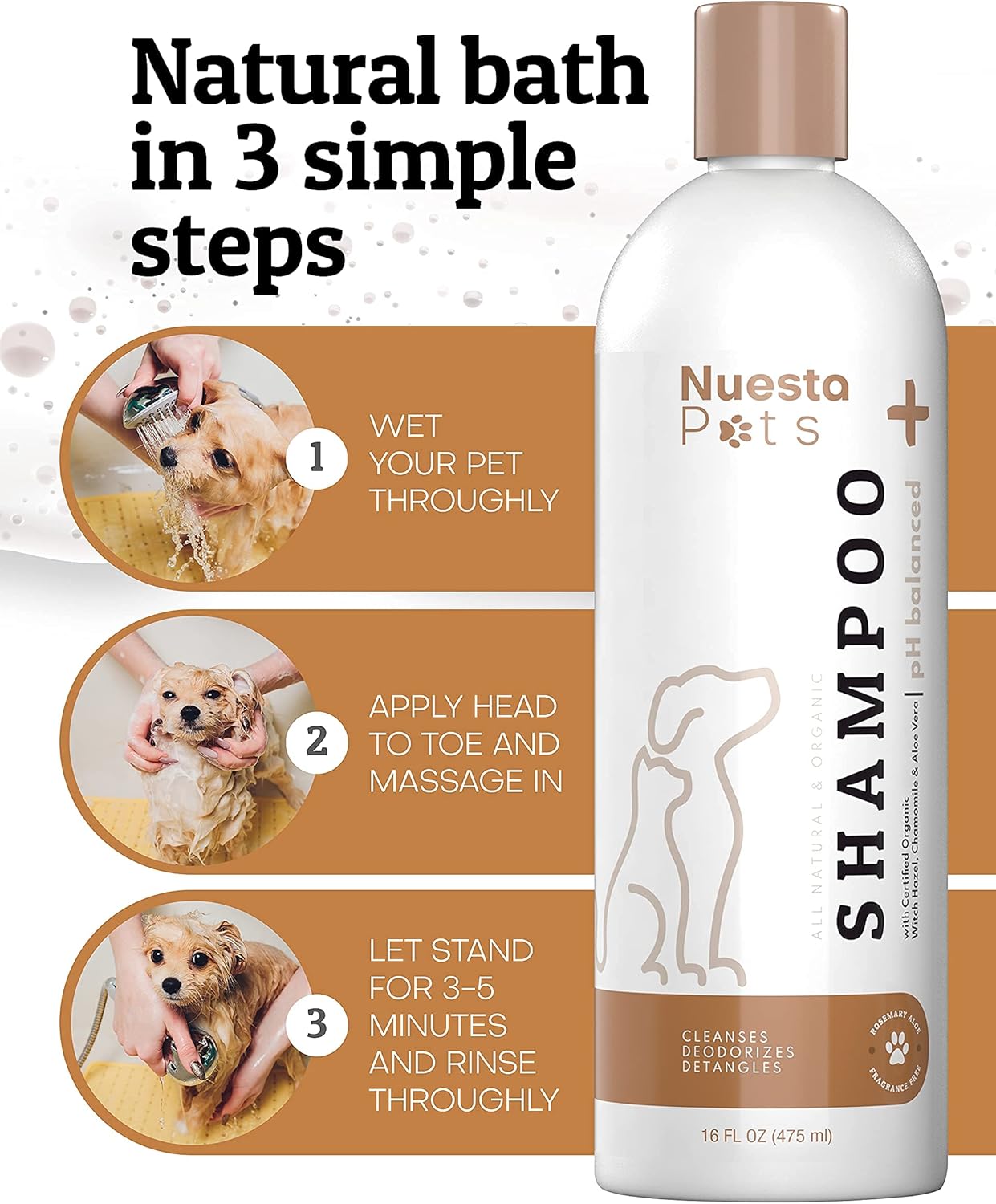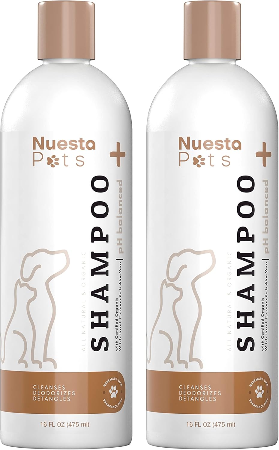 Pet Shampoo for Dogs & Cats (2 Pack) Unscented Fragrance Free Natural & Organic – pH Balanced for Dry & Sensitive Skin for Puppies & Kittens – Chamomile, Aloe & Oatmeal – Soap & Cruelty Free – 16 Oz