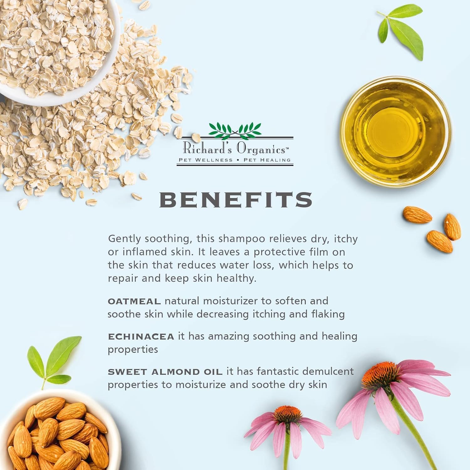 Richard’s Organics Moisturizing Shampoo for Dogs, 12 oz. – Pet Shampoo with Oatmeal, Echinacea, Sweet Almond Oil to Soothe/Protect Dry, Itchy, Inflamed Skin