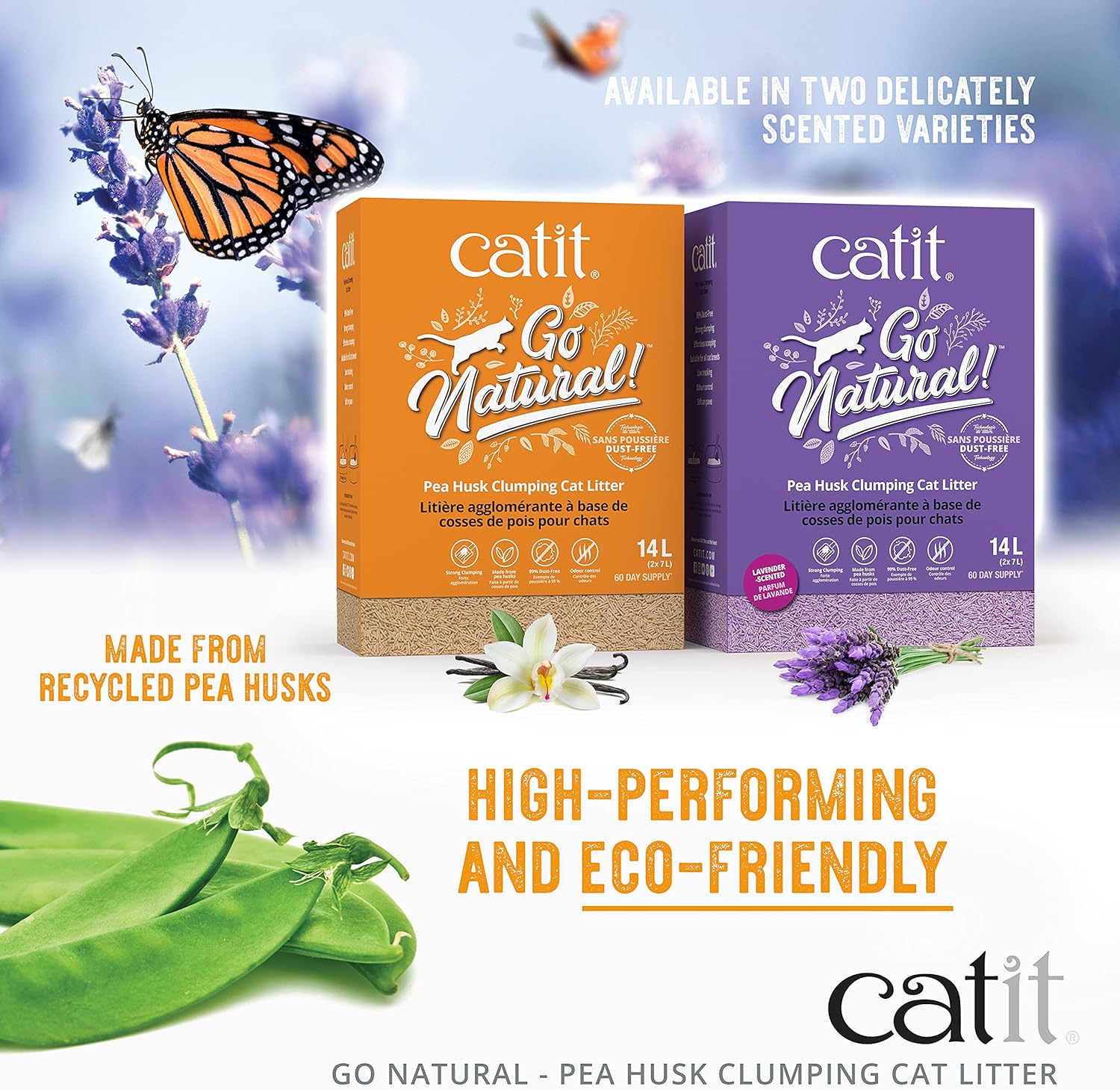 Catit – Go Natural Pea Husk Clumping Cat Litter – Lightweight, Dust Free, Easy Cleaning & Scooping, Flushable Kitty Litter with Odor Control & Subtle Fragrance – 12.3 Lbs, Lavender Scented