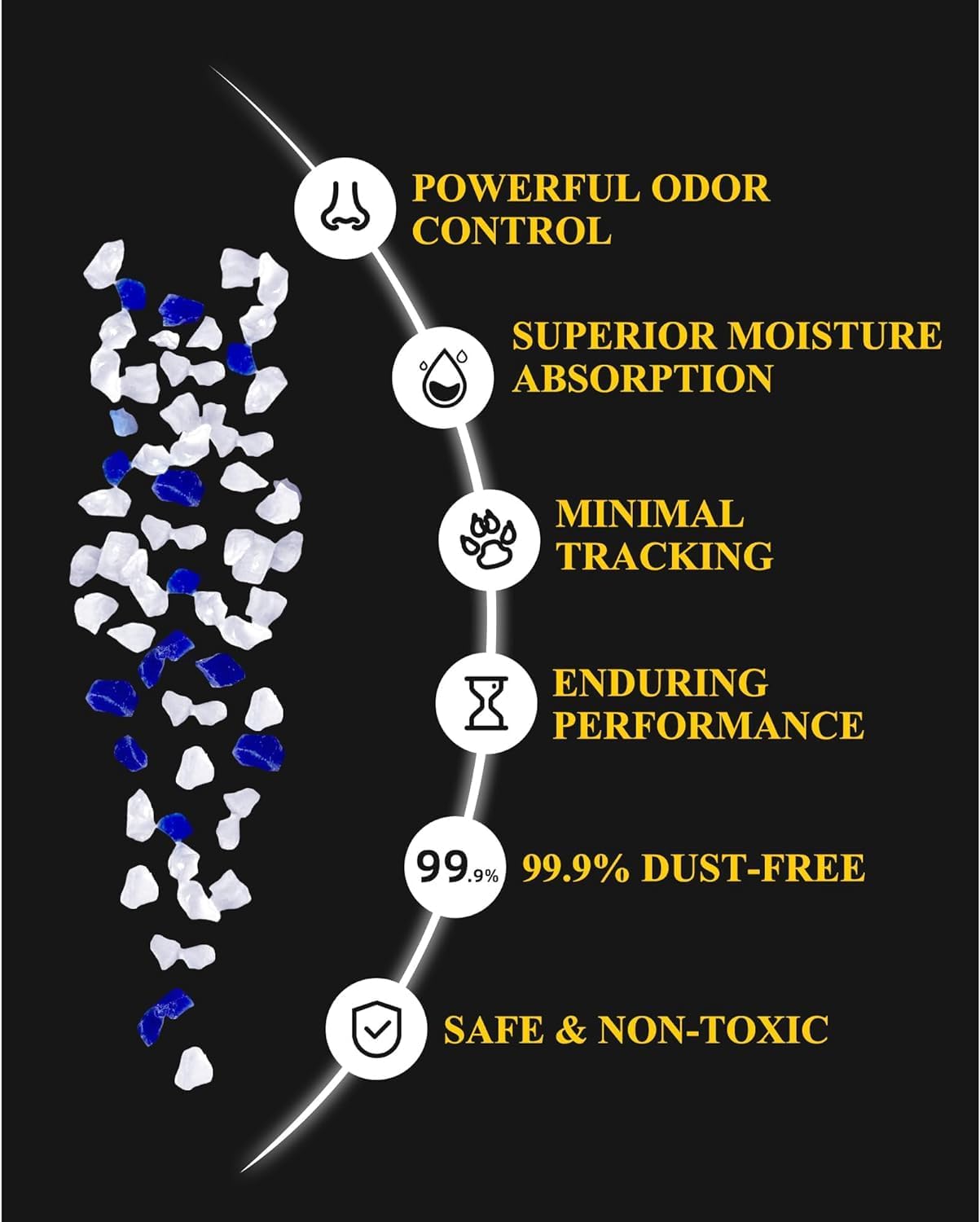 EFFECTIVE ODOR CONTROL: Expertly neutralizing smell, this cat crystal litter ensures a consistently fresh litter box environment. Its rapid absorption technology swiftly captures and locks away odors, keeping your home smelling pleasant