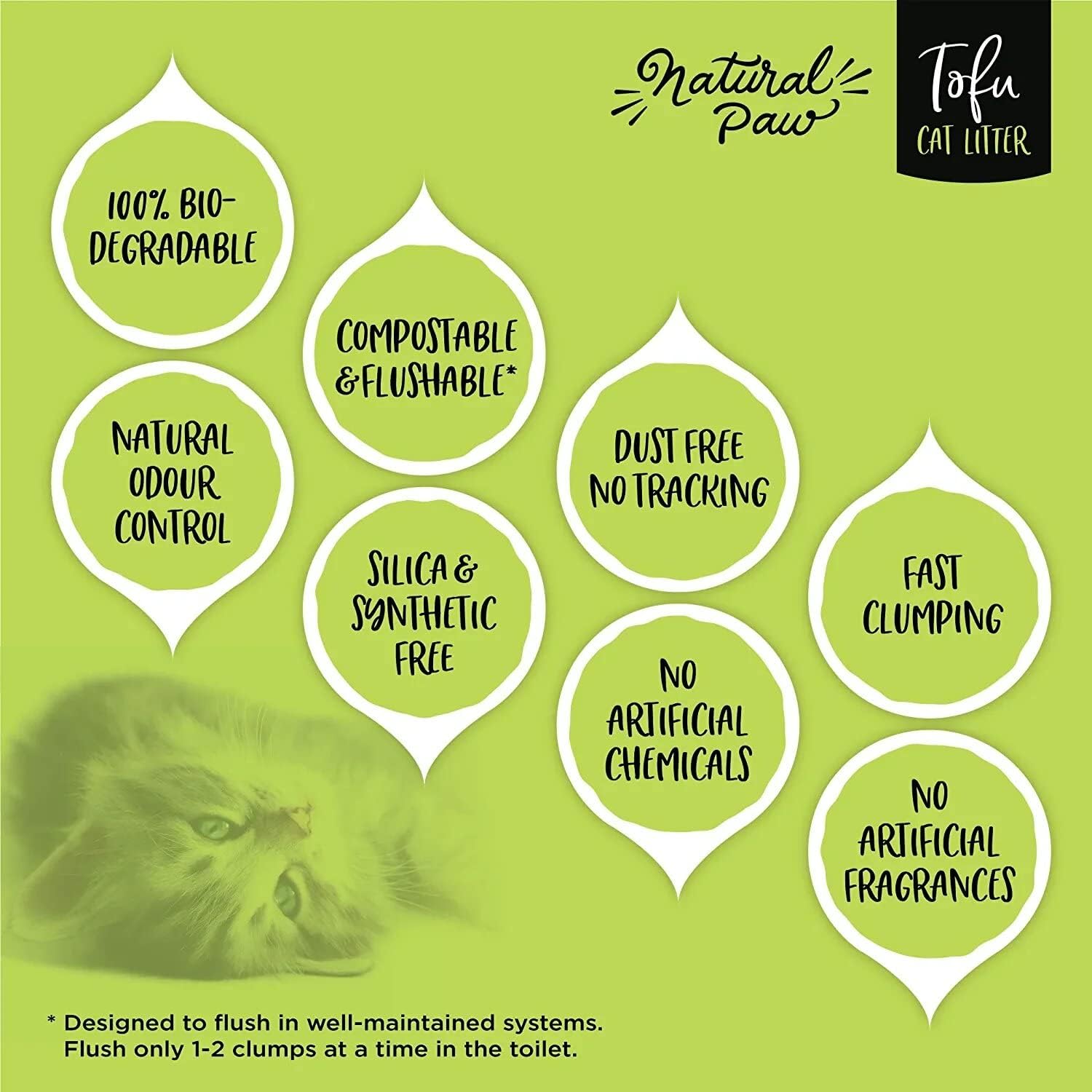 Natural Paw clumping tofu cat litter is a lightweight sustainably sourced natural litter formulated to destroy litter box odors with superior clumping and 99.9% dust-free. Natural Paw original unscented litter pellets clump into small balls that are easy to scoop but are NOT COMPATIBLE with non-clumping litter pellets from other major manufacturers. Simple one bag per cat per month allows for simple replenishment eliminating the need to store heavy litter bags. Now with natural ammonia blocking technology, charcoal is a natural way to eliminate odor. With many scents available including original, charcoal, green tea, peach, strawberry, milk, coffee and lavender, the subtle scent is paw activated for maximum odor control. Superior clumping quickly absorbs liquids while trapping odors on contact to form tight clumps making cleaning a breeze. 99.9% dust-free and pet-friendly soft pellets great for adult cats and kittens, this litter keeps the air and surfaces clean. To maintain your litter box, simply sign up for one 4.5 pound bag delivered each month and add more Natural Paw cat litter. – Safety Warning: or pet use only. All ingredients are natural and consumption of litter by accident is harmless. If your pet is known to consume excess amounts, kindly consult a vet immediately. – Directions: pour 3-5 inches in the litter box. The depth allows cats to dig and cover their waste naturally. Scoop out waste balls daily with a scooper and flush waste in toilet. Add as needed to maintain the litter box. Always wash hands after handling the box