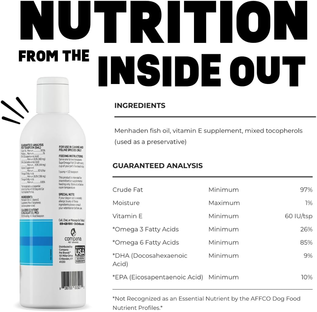 Dinovite SuprOmega Fish Oil for Dogs & Cats – Vitamin E & Omega 3 Meal Topper – Skin & Coat Health for Dogs & Cats – 8 oz