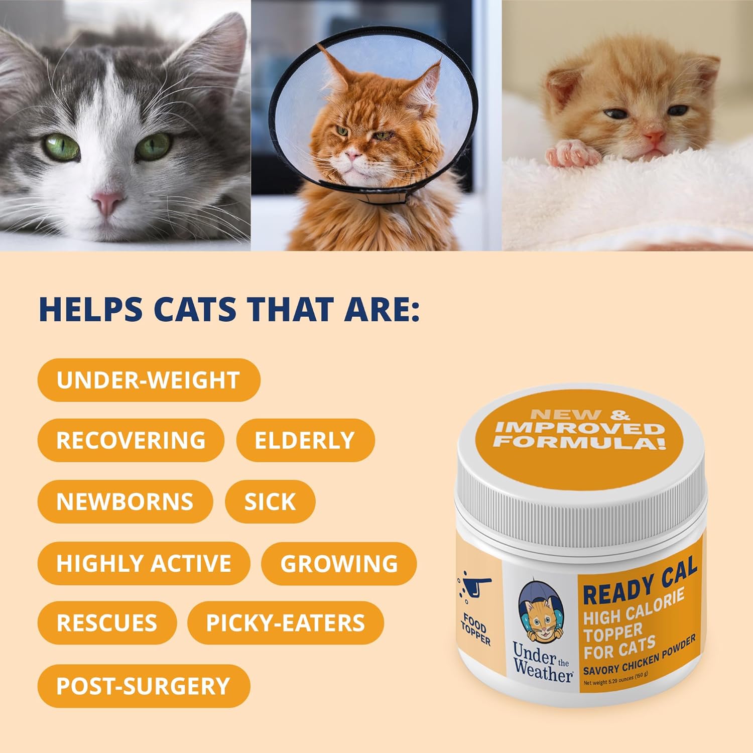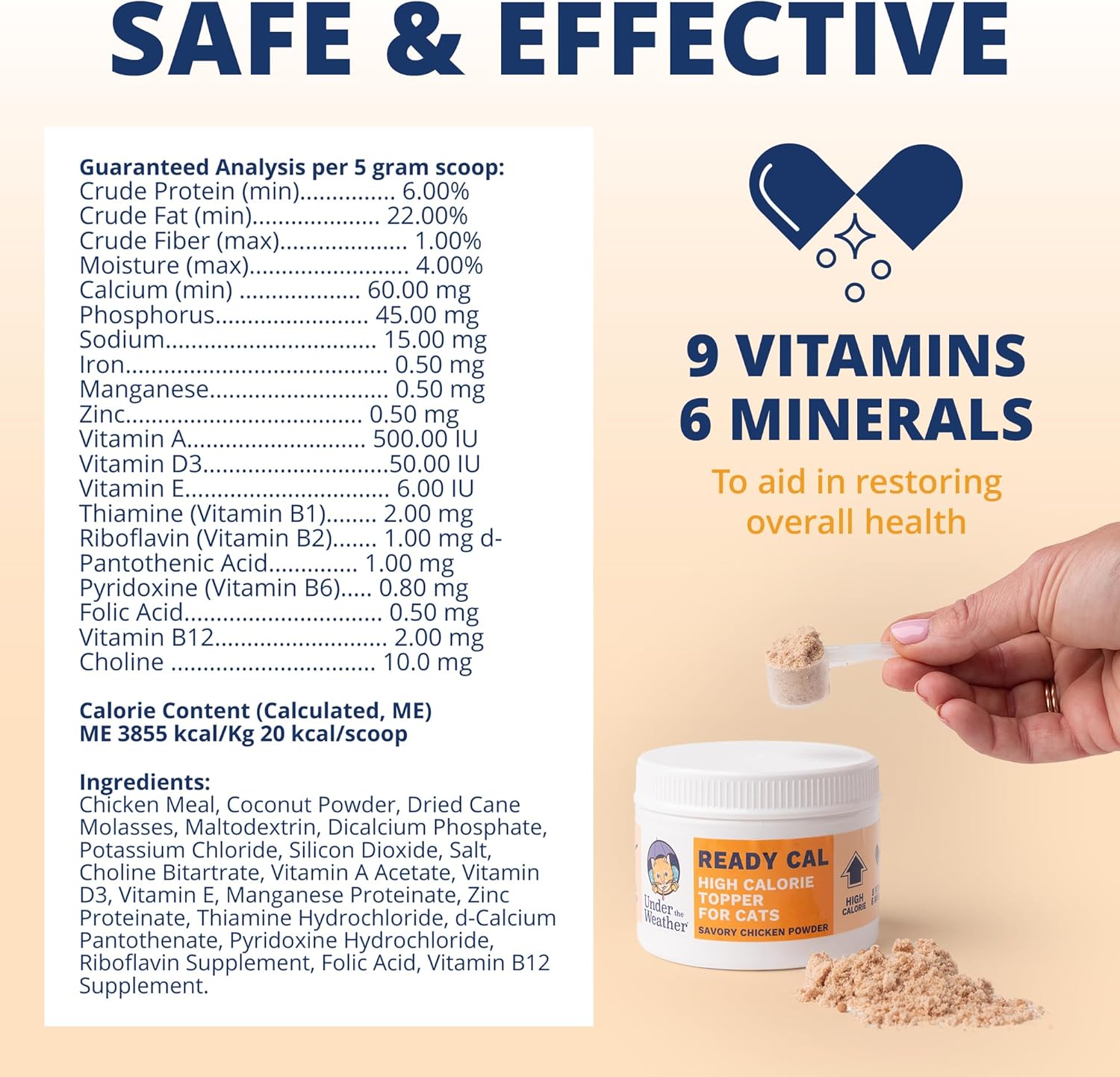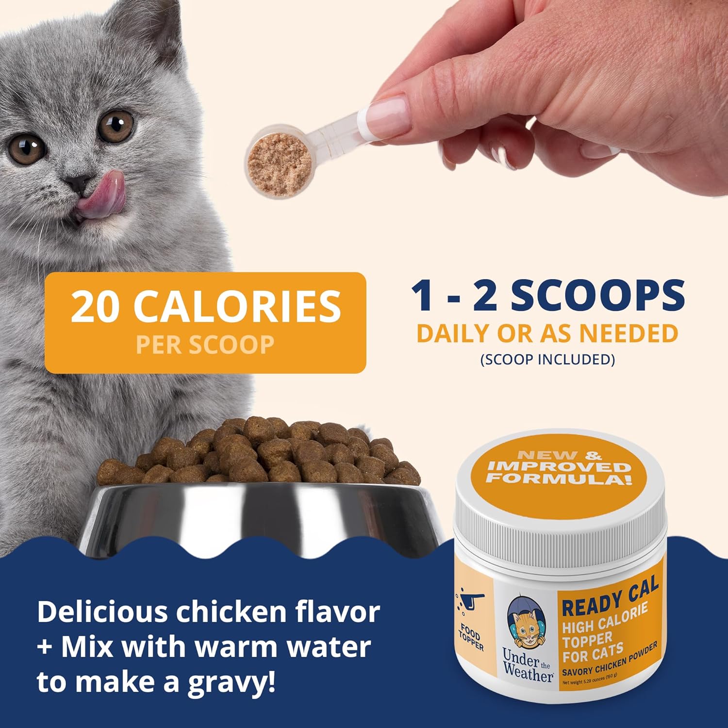 Under the Weather Ready Cal Powder for Cats | High-Calorie Weight Gainer & Appetite Stimulant | Cat Energy Booster Veterinarian-Approved Pet Supplement with Vitamins & Minerals | Chicken Flavor