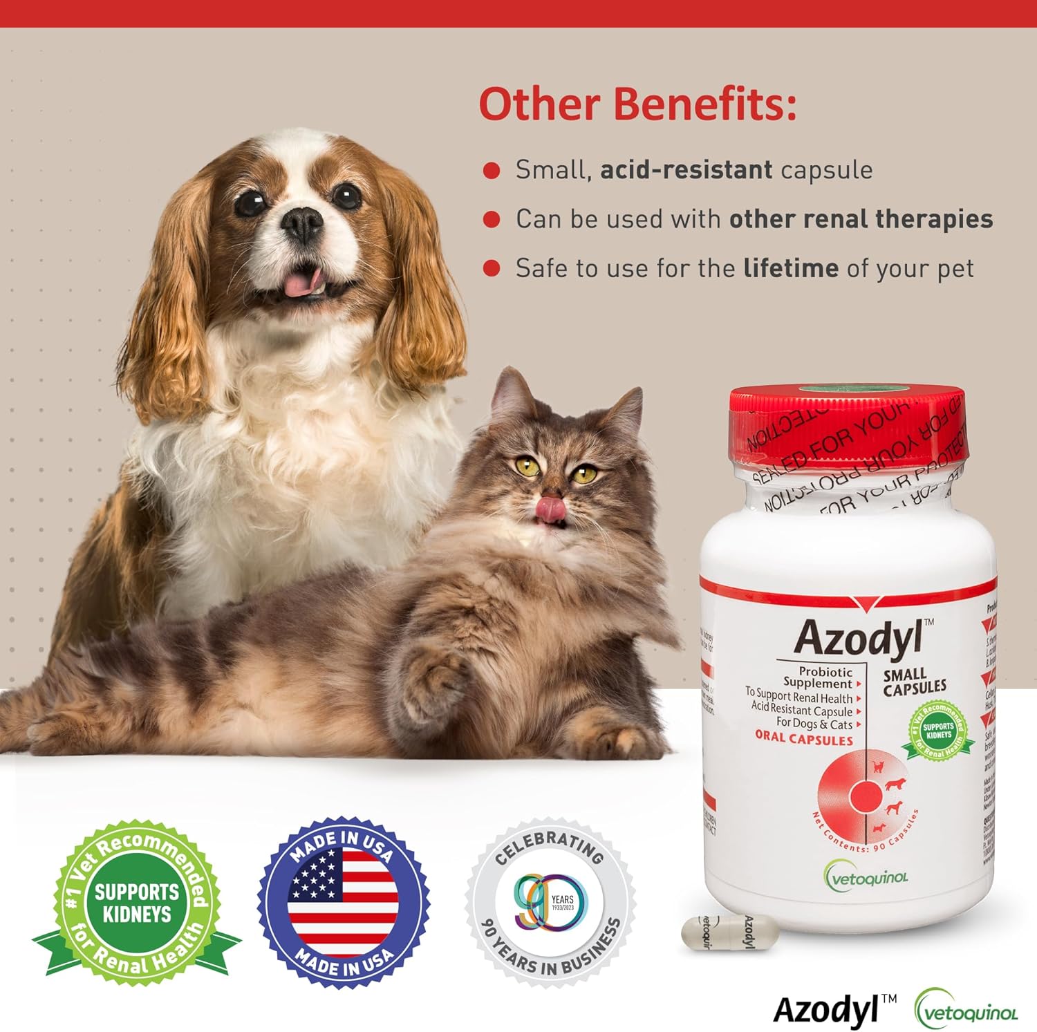 Vetoquinol Azodyl Kidney Health Supplement for Dogs & Cats, 90ct – Probiotic Pet Wellbeing – Help Support Kidney Function & Manage Renal Toxins – Renal Care Supplement – Easy-to-Swallow Small Caps