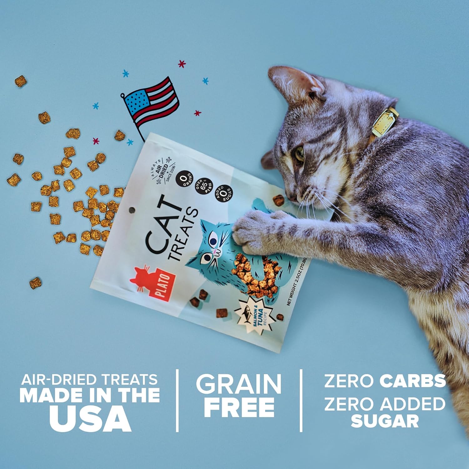 PLATO Pet Treats Air-Dried Cat Treats Tuna & Salmon Recipe, Grain Free, All Natural, Made in The USA, 2.5oz