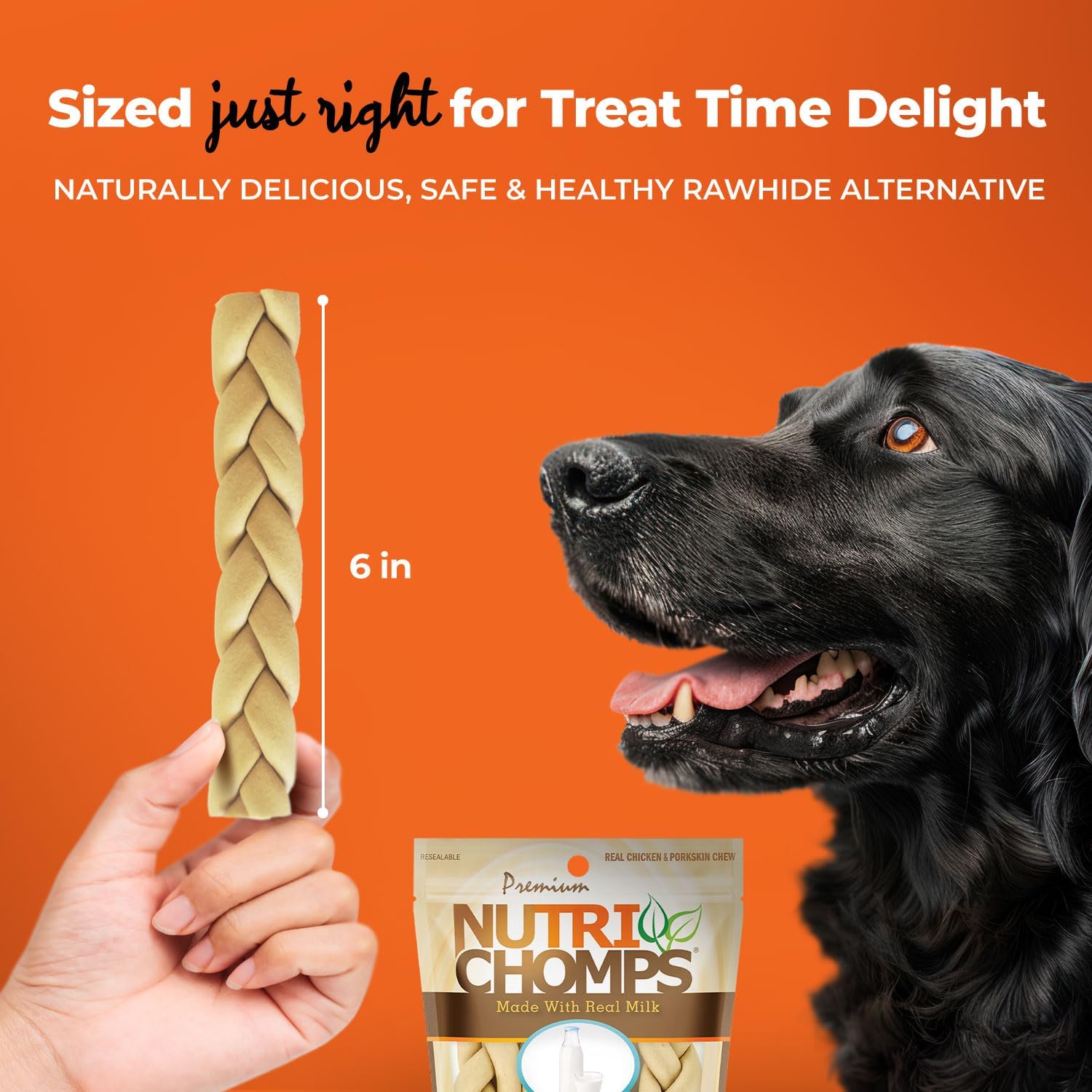 PREMIUM BRAID STICK CHEWS: Our Braid chews are made with oven-roasted chicken and pork skin, along with real milk or peanut butter, offering a nutritious snack for your dog. Braids are perfectly sized for Small, Medium, Large and Giant dogs. The Braids come in a resealable bag making it easy to preserve freshness.