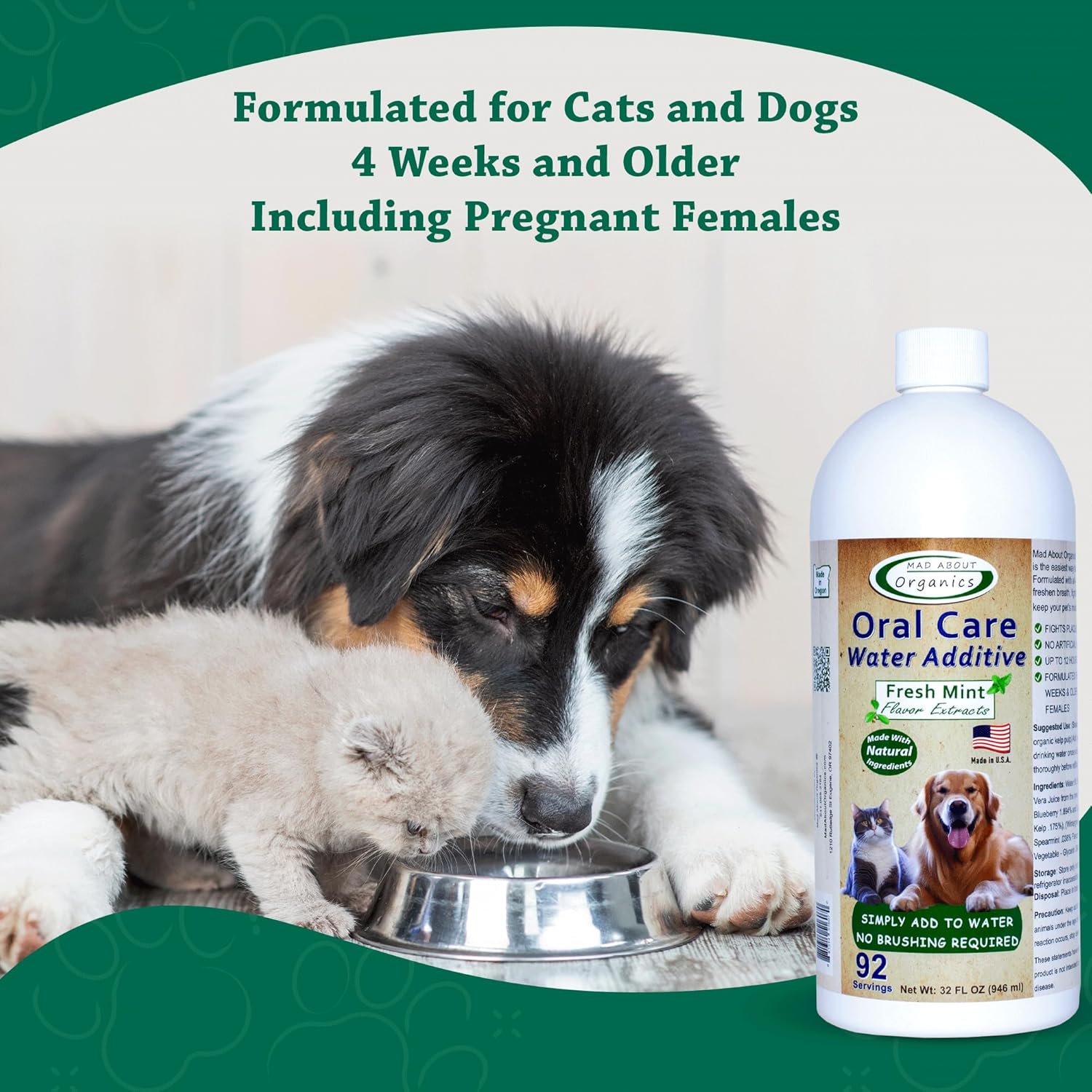 Oral Care Water Additive for Cats & Dogs – Gentle Dental Support – Reduces Breath Odors, Promotes Gum Health – No Brushing – Convenient for Daily Use, Fresh Mint Flavor, 32 FL oz