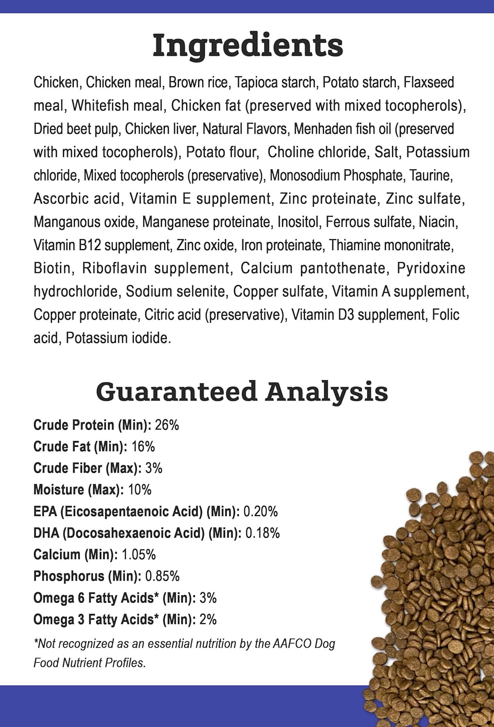 We start with natural humanely raised chicken raised without antibiotics as the #1 ingredient. Our recipes are made with a precise blend of natural ingredients, antioxidants, vitamins and minerals expressly blended for optimal nutrition. No corn, wheat or soy is added to our recipes. Additionally, no artificial preservatives, colors or flavors are included in our premium pet food. Formulated by our pet food nutritionists, Tender & True Antibiotic-Free Chicken & Brown Rice Recipe dog food is formulated specifically for all dogs throughout All Life Stages, except for growth of large size dogs, 70 lbs or more as an adult.