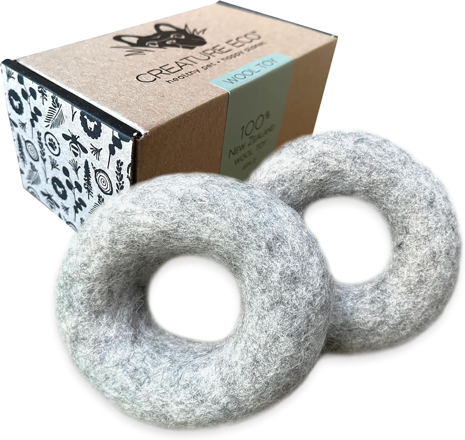 Creature ECO Organic Wool Ring Dog Toys for Moderate Chewers – Eco-Friendly Puppy Toys for Interactive Play – Natural Non Toxic Fetch Toy, Safe for Your Pet & The Planet – 2 Pack