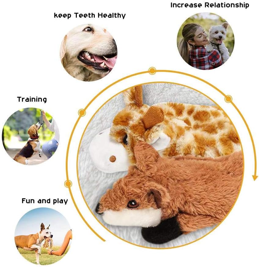 Two squeakers inside: The toys have squeakers in both head and tail that will attract the dog’s attention. The funny squeakers with hard-to-resist crunchy paper inside will motivate their natural hunting instinct and encourage them to come back for more. Suitable for big to medium size toys.
