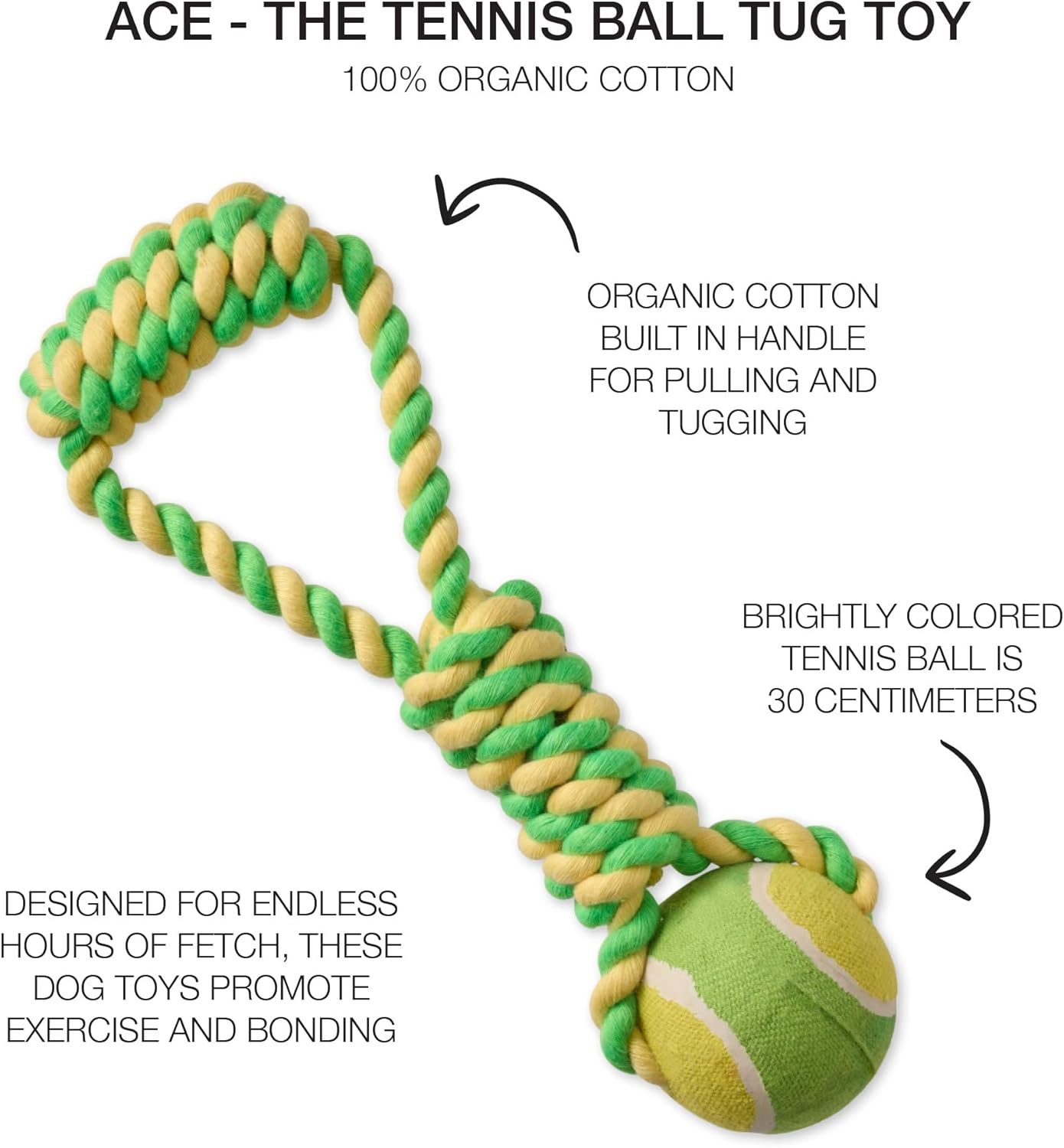 “Rope For The Best” Tennis Ball Rope Tug Toy—the ultimate playtime essential for your furry friend! With this toy, it’s play, tug, fetch, and repeat—keeping your pet entertained and active for hours on end. Crafted from 100% organic cotton, the rope ensures durability and eco-friendliness, making it a guilt-free choice for environmentally conscious pet parents. The brightly colored tennis ball, measuring 30 centimeters, adds an extra element of fun to playtime. The interactive nature of the toy promotes physical activity, keeping your furry friend healthy and engaged. Our furry testers give these toys 5-paws for fun, making them the paw-fect gift for your beloved fur babies! Treat your pet to hours of entertainment and bonding with our Tennis Ball Rope Tug Toy—it’s guaranteed to keep tails wagging and hearts happy!