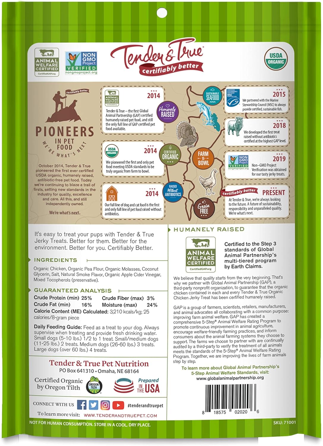 Tender & True Organic Chicken Jerky Treat, 4 oz bag
