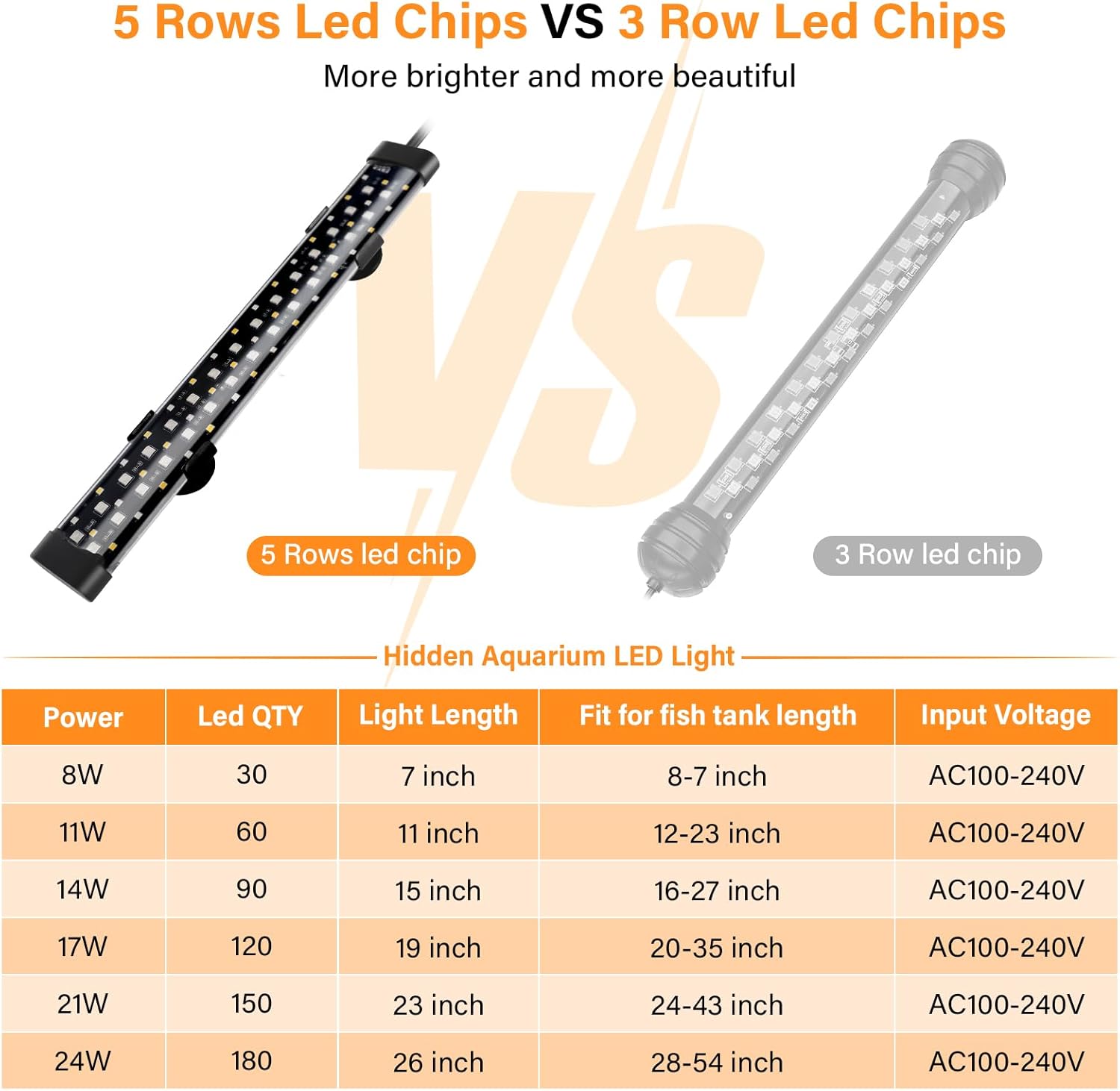 ★[5 columns of Led Chips, High-quality Led]: Compared with other submersible led lights, our lights have up to 5 rows of LED chips, which are brighter and more beautiful. Our fish tank lights use high-quality 2835 + 5050 model lamp beads with a long service life of at least 50,000 hours. Tish ultra bright full-spectrum RGB LEDs can present the vivid colors of aquatic plants and fish, making your fish tank a colorful landscape