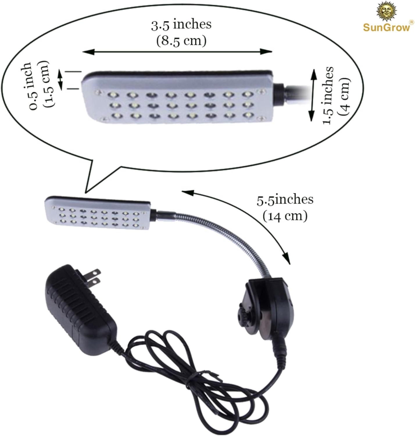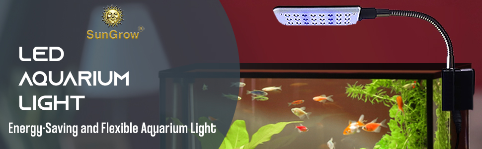 SunGrow LED Aquarium Light for Fish Tank, 24 LEDs, White & Blue Adjustable 360° Flexible Metal Arm Small Aquarium LED Light for Nano Tank, Install on Dog & Cat Crate for Security, Kitten & Puppy Care