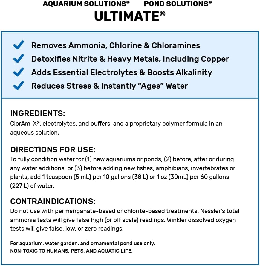 Developed to provide the hobbyist with a dependable water conditioner to remove chlorine while providing a number of other benefits to reduce fish stress caused by water quality issues.