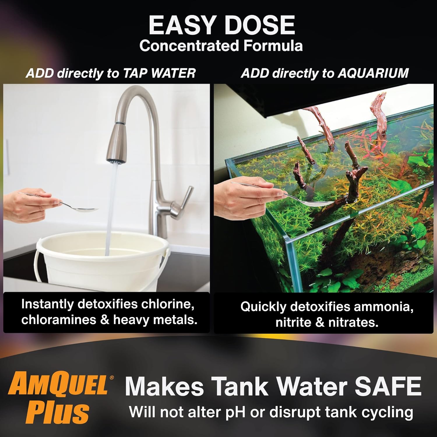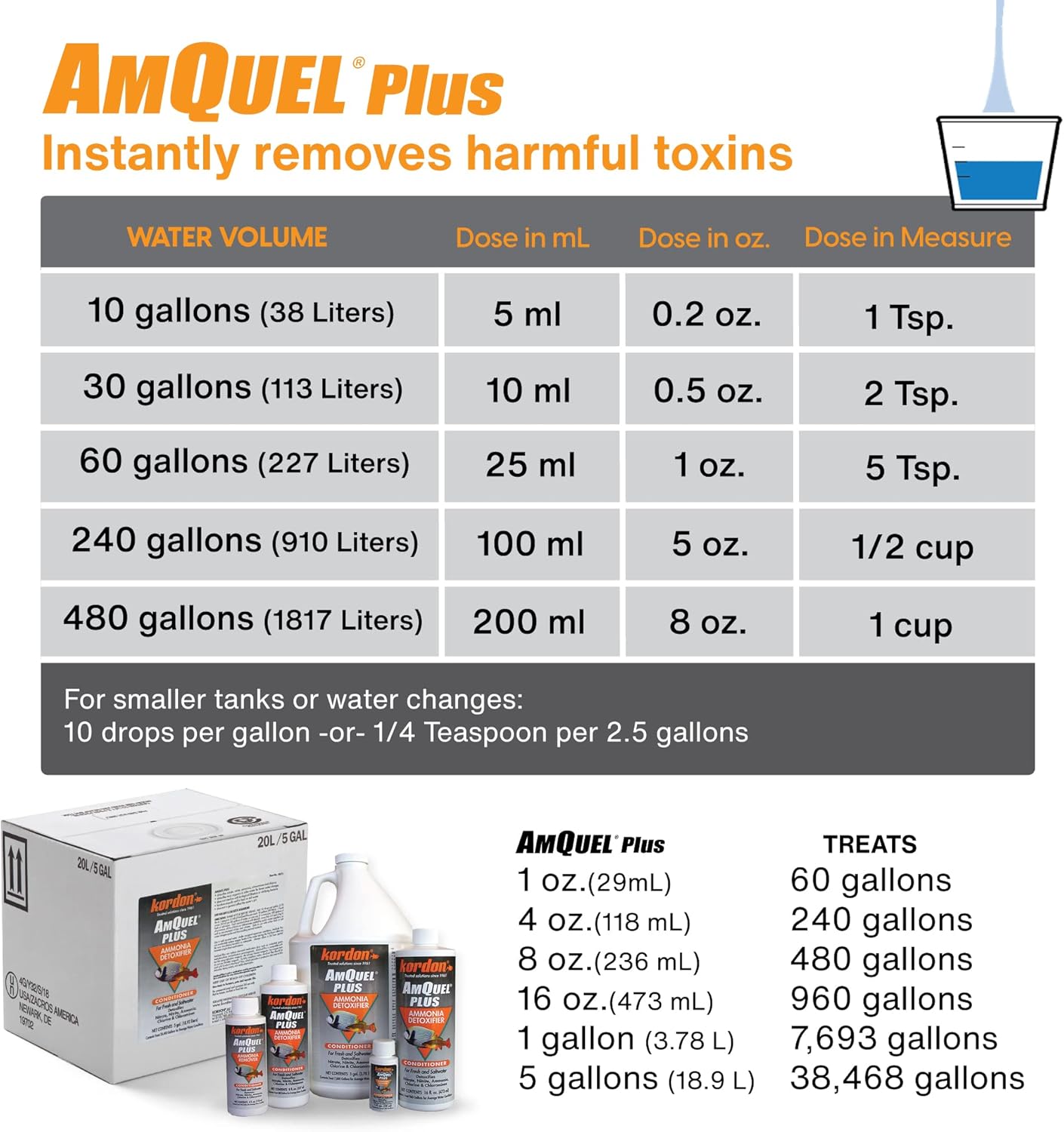Kordon AmQuel Plus Aquarium Water Conditioner – Instantly Detoxifies Ammonia, Nitrite, Nitrate, and Chlorine Remover for Freshwater & Saltwater Aquariums, 16 Ounces