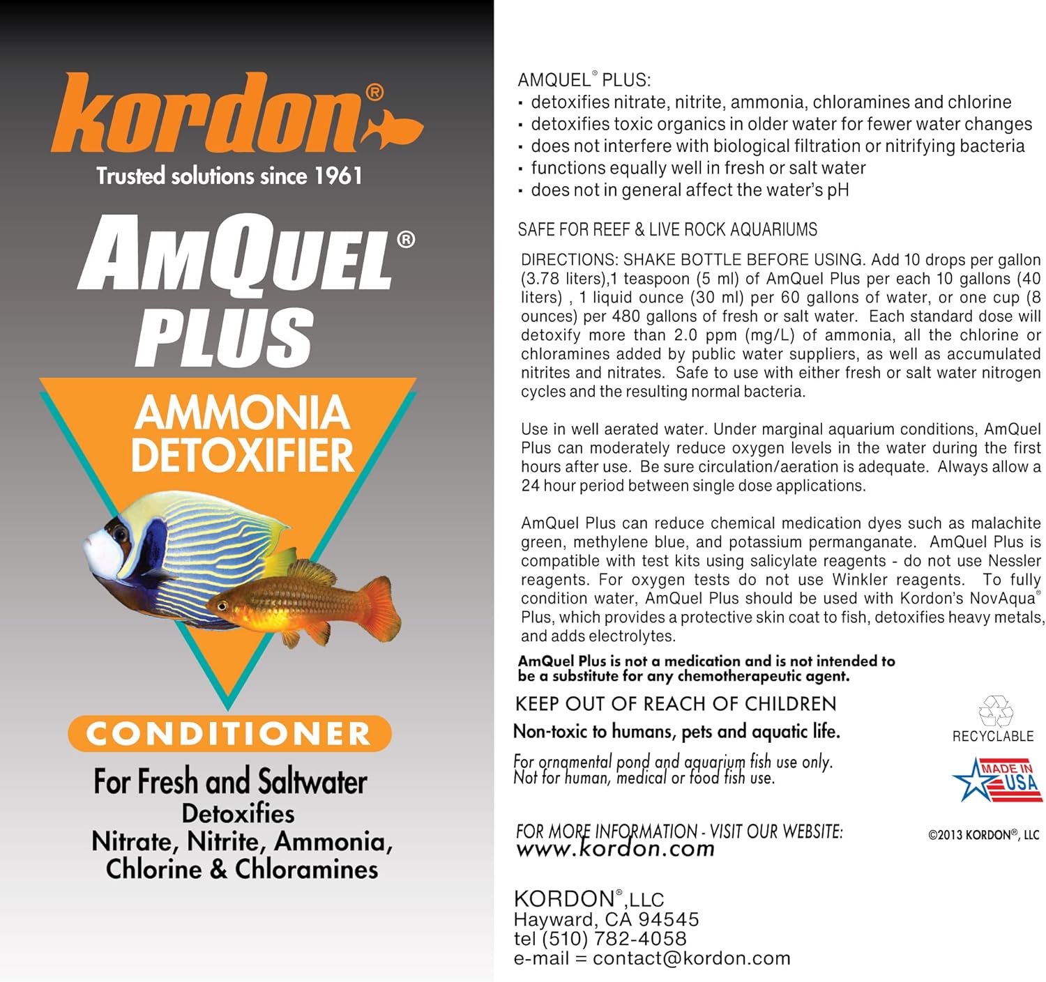 Be the first to review “Kordon AmQuel Plus Aquarium Water Conditioner – Instantly Detoxifies Ammonia, Nitrite, Nitrate, and Chlorine Remover for Freshwater & Saltwater Aquariums, 16 Ounces”