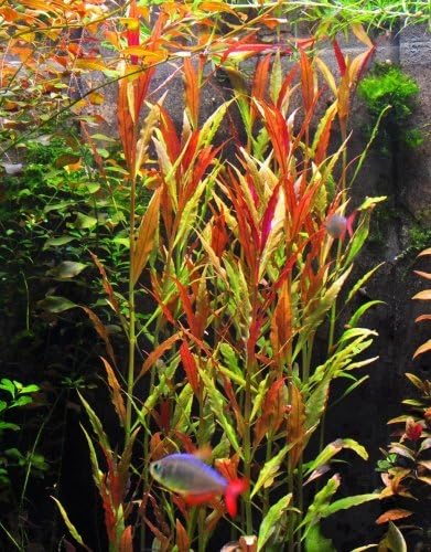 Provide natural resting and hiding places for your smaller fish and invertebrates. This plant will turn red with high lighting and CO2