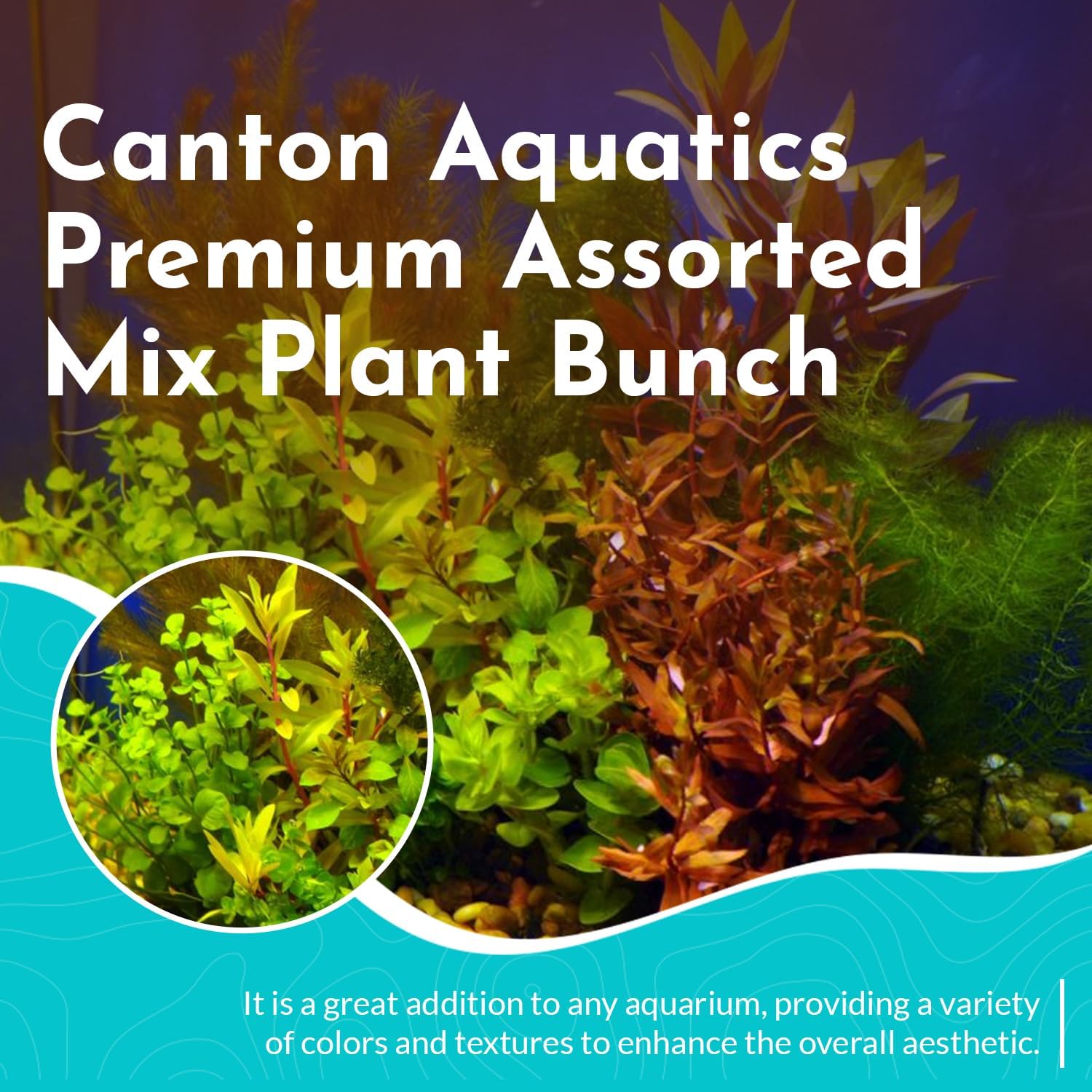 IDEAL AQUARIUM PLANTS: Canton Aquatics Premium Assorted Mix Plant Bunch is a great addition to any aquarium, providing a variety of colors and textures to enhance the overall aesthetic. This plant set includes Ludwigia 2 Stems, Rotala 2- Stems, Amazon Sword (Echinodorus) 1 Stem and live Moss 1 Portion.
