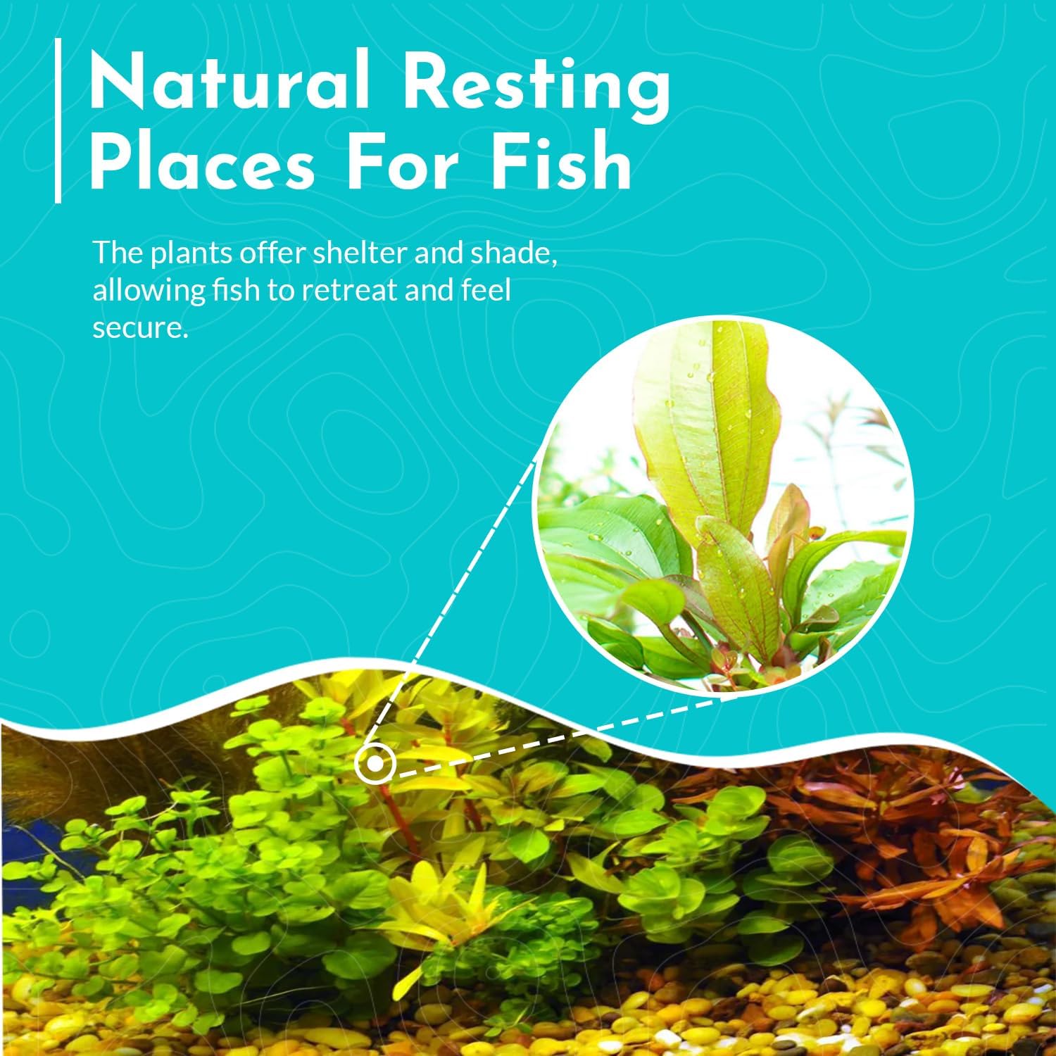 NATURAL RESTING PLACES: Canton Aquatics live aquarium plants not only provide beautiful colors and textures but also create natural resting places for fish. The plants offer shelter and shade, allowing fish to retreat and feel secure. This mix of plants can create a healthy and natural environment for fish to thrive in.