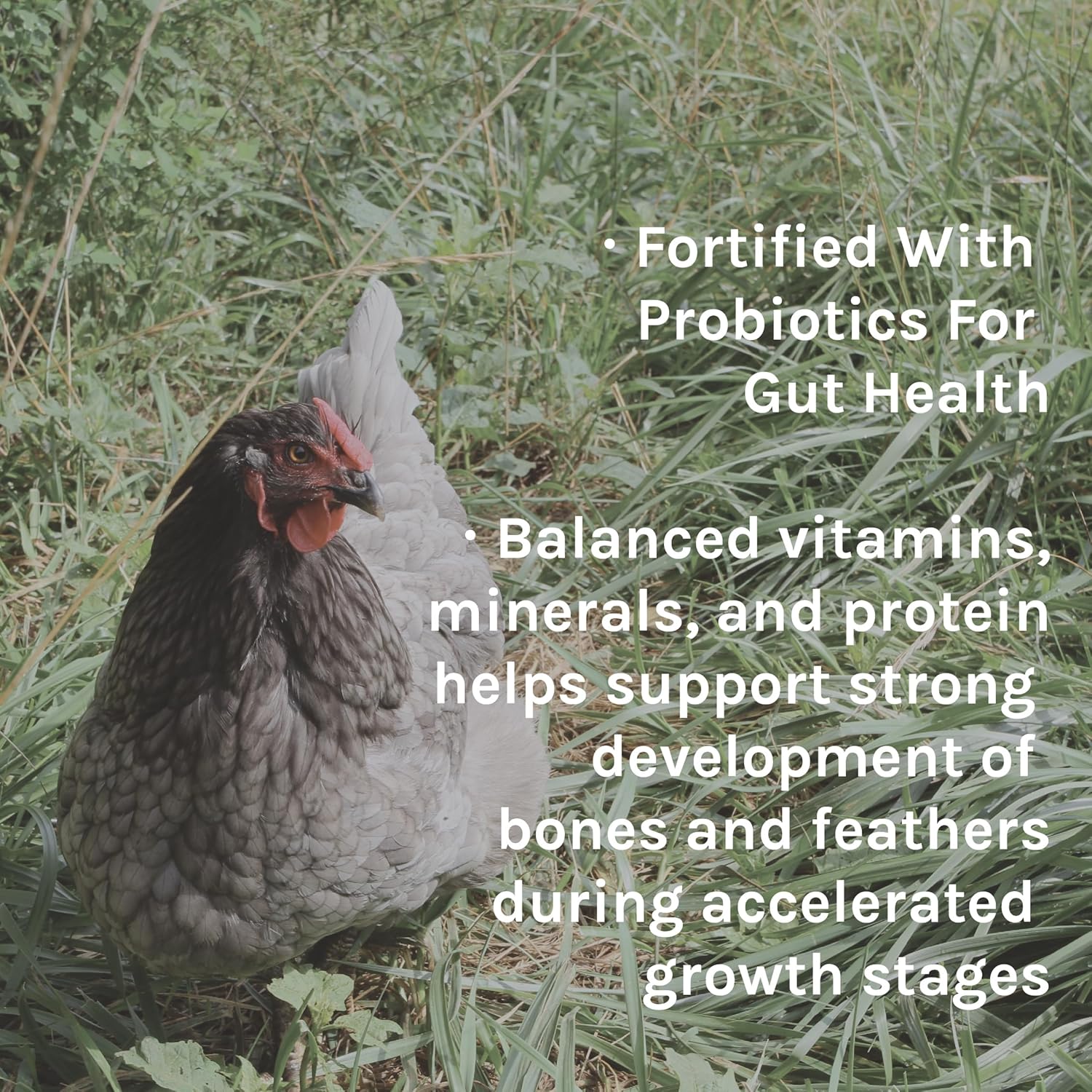 About this item For Growing Chicks After 4 Weeks Of Age 2% Lower Protein Than Starter For Controlled Weight Gain Fortified With Probiotics For Gut Health Certified Organic, Non-GMO & Soy-Free