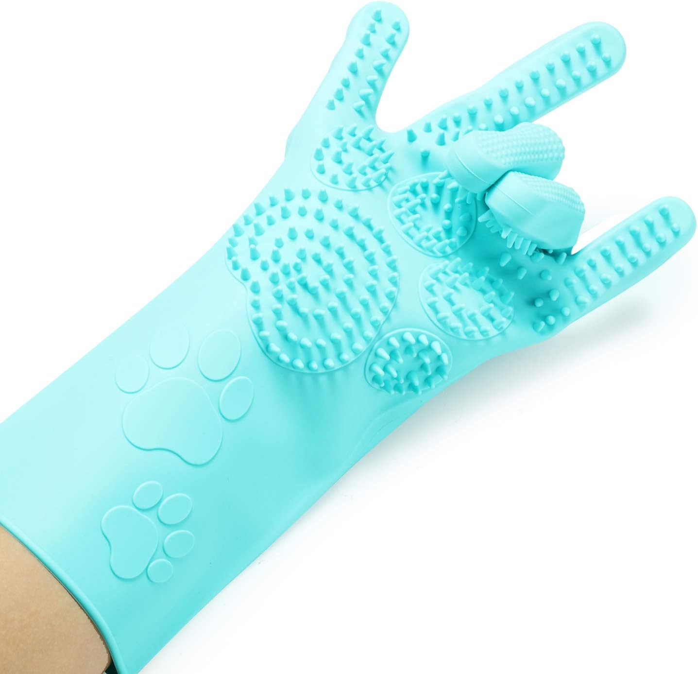 versatile use: The pet gloves are ideal for long and short haired dogs, cats, horses, rabbits and other pets, grooming the hair quickly, gently and effectively. It also can be used for kitchen, cleaning the bathroom & bed room, washing dishes, removing wardrobe dust, fruit & vegetable cleaning