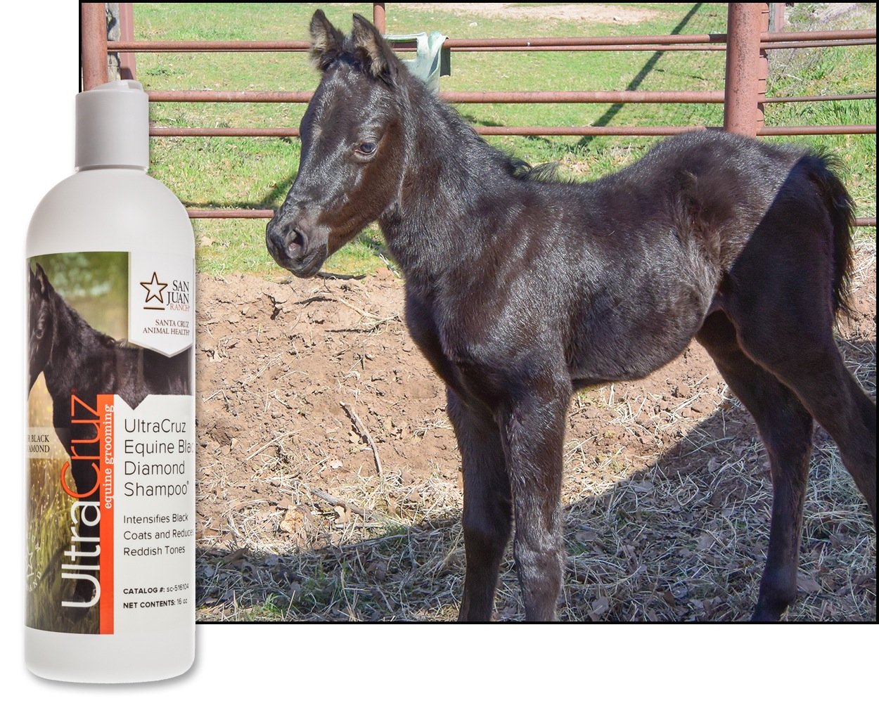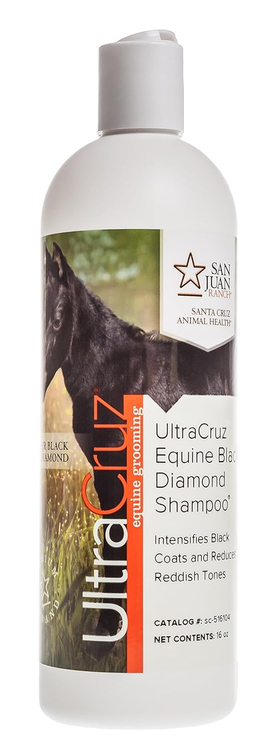 UltraCruz Black Diamond Shampoo intensifies black coats and reduces reddish tones often caused by sun fading in Dark Horses. This formula is gentle, safe, pH balanced and produces saturated rich color with brilliant highlights. The easy rinse formula is free of harsh chemicals and easily removes stains.