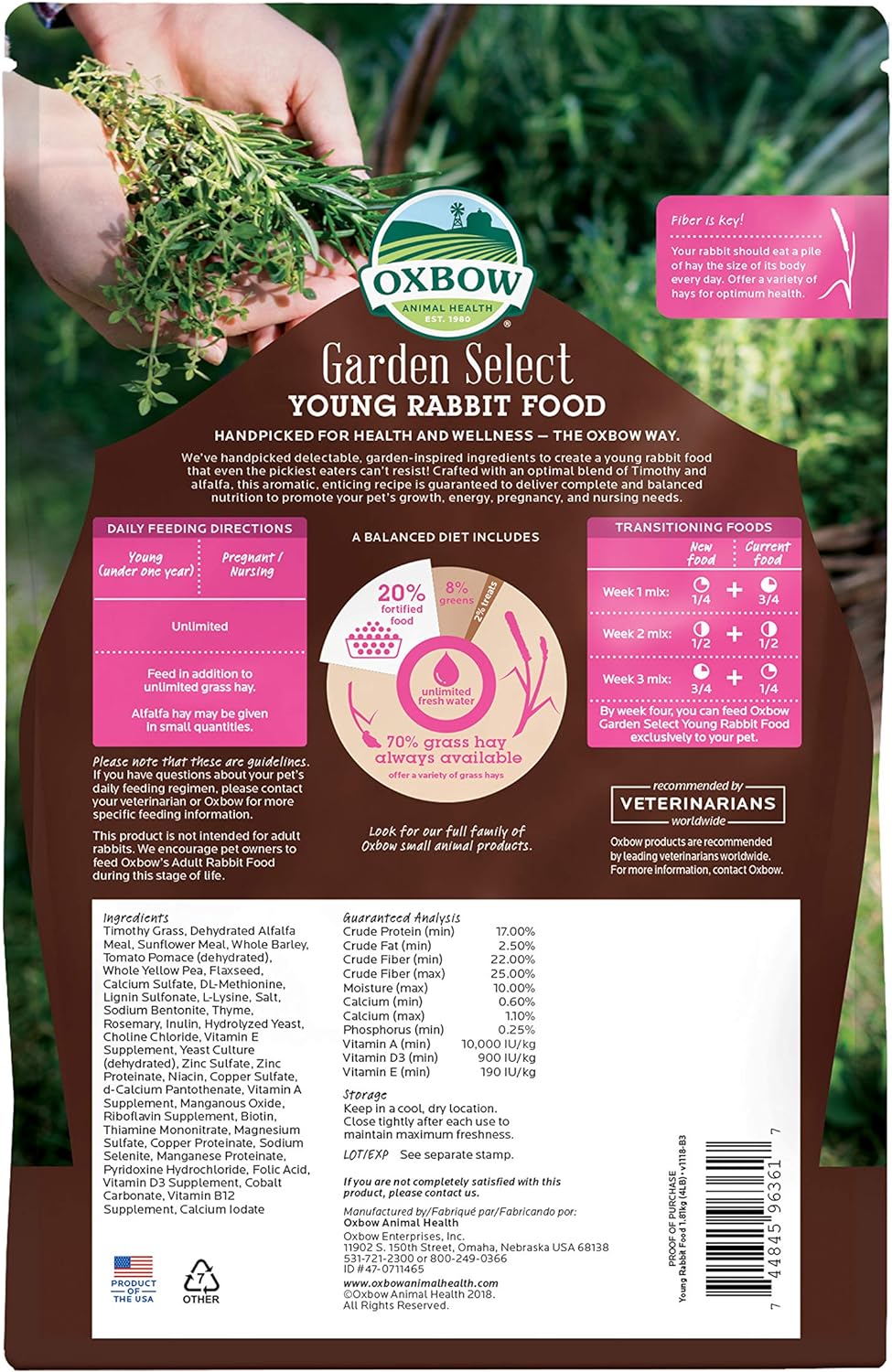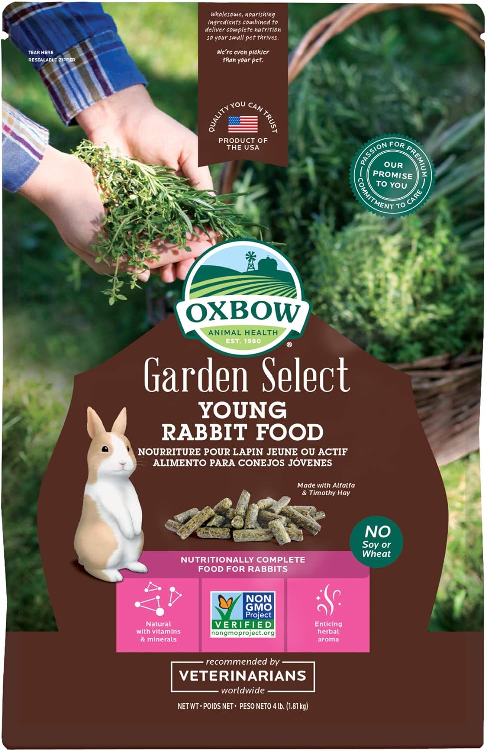 Oxbow Animal Health Garden Select Young Rabbit Food, Garden-Inspired Recipe for Young Rabbits, No Soy or Wheat, Non-GMO, Made in The USA, 4 lb Bag