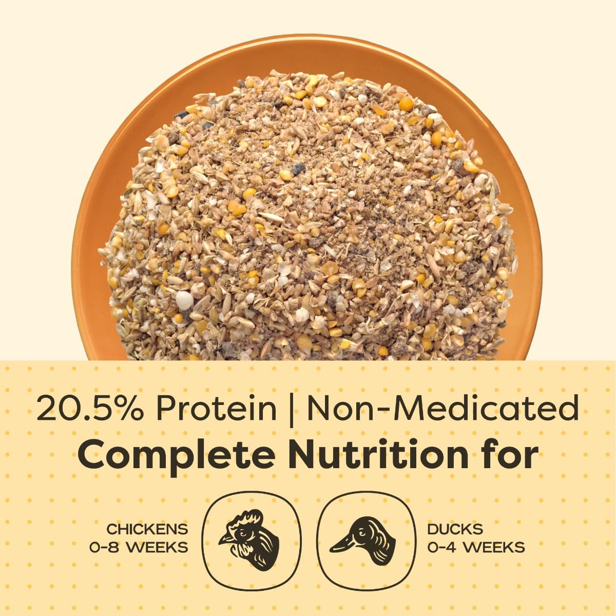Strong Growth and Vitality – With 20.5% protein from organic grains, this feed supports muscle development, bone health, and soft, fluffy feathers, giving your baby chicks and ducklings the nutrients they need to thrive.
