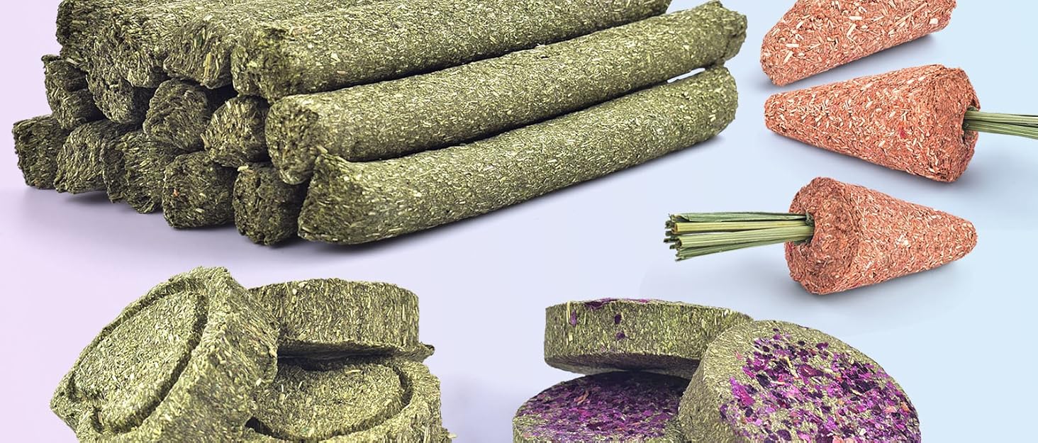 ORIGINAL RABBIT TREATS: Made with wholesome carrot, timothy grass and garnished with rose petal into chewy toys, nourishing, no additives and pigments