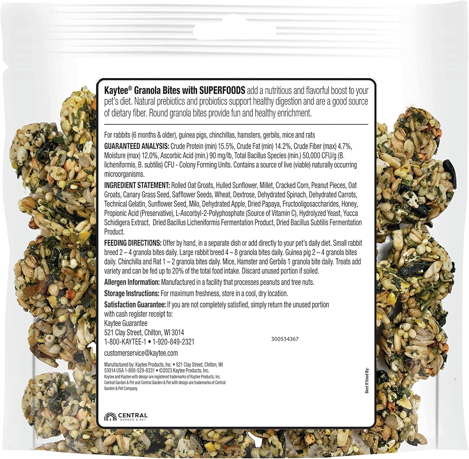 Kaytee Granola Bites with Superfoods Spinach and Carrot for Rats, Mice, Hamsters, Gerbils, Rabbits, Guinea Pigs and Chinchillas, 4.5oz